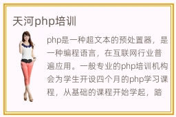 php是一种超文本的预处置器,是一种编程语言,在互联网行业普遍应用。一般专业的php培训机构会为学生开设四个月的php学习课程,从基础的课程开始学起,踏实基础。然而,考上大学的人毕竟是有限的,那么那些没有考上大学但是想学这么技术的人又该何去何从呢。现在的php专业领域有非常多需要关注的内容焦点,包括php的专业水平、php的应用能力。如果大家在php专业方面缺乏经验,或者是没有成熟的应用水平,那么都可以在老师的帮助下来提升,那么老师的能力比较强,可以辅导更多不同专业基础的学生,当然就可以让学生赢得更快,飞得更高更远。天河php培训都是花费重金聘请的专业老师来,进行授课,而且,老师会运用科学合理的方式,让你快速学习jav天河php培训就业a。