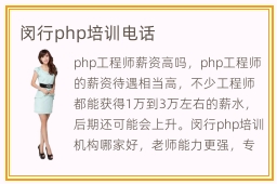 php工程师薪资高吗,php工程师的薪资待遇相当高,不少工程师都能获得1万到3万左右的薪水,后期还可能会上升。闵行php培训机构哪家好,老师能力更强,专业辅导优势更明显,那么这些机构的水平才会更高。学生应该抓住时间,及时学习,制定清晰的规划,不要总是漫不经心。更重要的是,在这些对照组的结果当中,可以从中找出自身的优势,针对性发挥个人长处,弥补自身的不足。闵行php培训机构中心有用嘛。闵行php培训机构排名如果是很靠前的情况下,那么这些机构应该是综合实力比较强,学生口碑更好。php专业辅导班确实是很受大家欢迎的,一方面在于php培训机构技术成果比较丰硕,很多学员报名之后经过老师的系统教学和培训,都能够短时间内看到明显成绩。