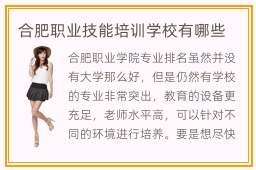 合肥职业技能培训学校有哪些