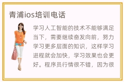 学习人工智能的技术不能够满足当下,需要继续奋发向前,努力学习更多层面的知识,这样学习进程就会加快,学习效果也会更好。程序员行情很不错,因为很多工作者都能短期内实现自己的目标,拿到比较好的待遇,但也有部分专业能力不太强的技术人员,没有非常大的学习进步,效果不好,学习的速度也很慢。因为辅导老师不仅安排编程语法知识的相关课程,又安排许多重要的应用项目,学生不仅可以掌握很多技术,还可以实现自己的目标。成为一名程序员之前,要掌握很多技术,若同学掌握效果不好,学习过程存在很多困扰,往往很难得到进步。如果大家想要改善个人的专业成果,可以考虑青浦编程培训,辅导老师的教学重点会更加明确,分析同学需要弥补的范围,这样学生不仅可以积累到很多理论,也可以掌握许多应用要求,从而获得更丰硕的编程培训成果。