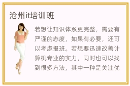 若想让知识体系更完整,需要有严谨的态度,如果有必要,还可以考虑报班。若想要迅速改善计算机专业的实力,同时也可以找到很多方法,其中一种是关注优质的教学机构,辅导老师的体系非常全面,教学思路很严谨,会让同学的知识体系更完善,基础更加扎实,能力更强。而选择游戏设计辅导机构之后,同学就能够在这样的环境下学习,从而相互促进,相互提升。另外本身计算机专业的要求就比较高,老师在课程辅导方面,也会制定一些重要的目标,使大家更快适应,然后对自己有更高的标准,从而获得更好的成绩。许多学生在沧州it培训,可以学到真正的计算机技术。这些课程非常多,学生不仅要理解it专业的书本知识,也要尝试更多应用,才能够在实践中突破个人的能力,解决应用烦恼。