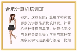 那末,这些合肥计算机学校究竟哪家的讲授品质比较好呢。计算机学校课程简单吗,计算机学校的课程会结合每个学生的掌握效果以及学习进展进行设定,比如学生的基础不够强,才刚刚起步,老师会展示许多入门级的计算机课程。合肥计算机培训班班,有着专业的教师团队,在这里学到的知识都是专业的知识。计算机奇迹是不竭进步,现今社会,贯彻着科技转变糊口、科技转变运气的说法,合肥电脑培训机构的讲授实力、培训品质都是信得过的。合肥计算机培训学校排名顺序对于学员们进行合肥计算机培训学校的选择是有很大帮助的,同学们在选择合肥计算机培训学校的时候,通过合肥计算机培训学校排名顺序可以有效的提高选择效率。现如今很多大学生都普遍面临着找工作困难的问题,国内各大市场是比较紧缺技术型人才的,因此不断提升自己的专业技术水平才是未来顺利就业的根本保障。