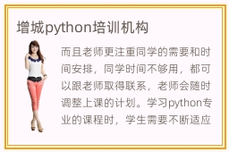 而且老师更注重同学的需要和时间安排,同学时间不够用,都可以跟老师取得联系,老师会随时调整上课的计划。学习python专业的课程时,学生需要不断适应各种应用领域的知识,将所学知识与应用的课程融合起来。另外有些老师可能会将毕生所学传授学生,学生迅速掌握之后,也可以快速学习Python的知识,缩短学习时间,可能一个月之后就可以非常熟练这些专业的知识。有的同学对这些课程了解不充分,或者理解不够全面,没有办法在工作应用上发挥出非常明显的价值,而且还可能会被淘汰。另外,Python编程工程师的待遇很高,也吸引着大量的技术人员。增城python培训机构就业有优势吗,大多数培训机构都能够和企业合作,将更多理论知识运用到工作当中,找工作时会更有优势。