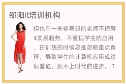 但也有一些辅导班的老师不理解it发展趋势,不重视学生的应用,在训练的时候总是忽略重点课程,导致学生的计算机应用成绩很普通,跟不上时代的进步。IT培训是不是很难,当然有很多机构都有不错的应用水平,课程难度比较低,不会给学生带来很多负面影响。it教学效果怎样,许多it辅导机构都非常适合理论技术比较差的同学或者应用能力不够强的同学,有的同学因为一直都没有办法学习到前沿的技术,而且掌握不了核心领域的内容,常常会变得很被动。在邵阳it培训机构机构里面学习,完全可以放心,一定可以学到专业知识。邵阳it培训周末班有很多好处,让同学积累更多经验,也利用好周末的时间,让生活更加充实。不过大家在选择这些机构之前,要了解自己的专业缺陷方向,这样学习IT专业知识的过程中才会更有针对性。