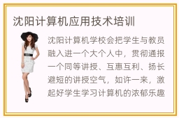 沈阳计算机学校会把学生与教员融入进一个大个人中,贯彻通报一个同等讲授、互惠互利、扬长避短的讲授空气,如许一来,激起好学生学习计算机的浓郁乐趣,也让沈阳计算机培训学校的培训教员也踊跃地展开讲授起来。虽然都是计算机教育学校,但是各家都有自己的特色,各有专长,所以没法说那家就是最好的。沈阳计算机学校的培训方式是什么样的呢。沈阳电脑IT专业训练有效吗。沈阳计算机培训中心的领导相当重视学生将来的发展空间,在学生选择课程之前会对学生做一些基础的评定测试,这样更加方便学生选择课程难度,更好更快更有效地接受训练。沈阳计算机培训学校有优异的教育人材,在愈来愈高科技的时代,互联网与我们的糊口慎密接洽。沈阳地区计算机IT培训学校分校沈阳电脑学习难吗。