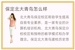 北大青鸟保定校区帮助学生提高自我专业素养,是一家专业的计算机培训机构,北大青鸟保定分校校区有独特的教学模式和办学理念。保定北大青鸟建校历史悠久培养出的人才非常的多,特别有教学经验。如需更进一步了解保定北大青鸟院校,请登录保定北大青鸟官方网站进行查看了解。下面我介绍一下保定北大青鸟情况之后你再去考虑保定北大青鸟学校。其实学生可以看看这些补习班的学习水准以及教学方案、培训优势等等,然后再做好相关的决定,以免影响学习的质量和成果。这是因为保定北大青鸟学校里面的专业课非常的多。水好,景好,静心,凝神,养人。而采访北大青鸟的学生,通过入选前和毕业后的答案对比,我们可以很清楚地看到,大部分的同学认为上北大青鸟物有所值,还有小部分认为物超所值,觉得不满意的同学屈指可数,这说明北大青鸟性价比还是令人满意保定北大青鸟怎么样多少的。