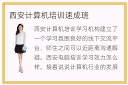 西安计算机培训学习机构建立了一个学习氛围良好的线下交流平台,师生之间可以近距离沟通解疑。西安电脑培训学习效力怎么样。接着说说计算机行业的发展前景,由于计算机行业发展飞快,导致专业人才一直处于匮乏的状态,社会急需优秀的计算机人才,所以一般这类人才都有相当好的就业前景。目前学习电脑技术的人也越来越多。这的的确确是一个非常大的问题,它关乎到学生未来的发展以及职业技能的培训问题。西安位于我国的西安省,尽人皆知西安省是国内涵经济水平成长与科技水平成长,都首屈一指的大都会。西安计算机培训学校在选拔教师方面有严格的制度,一般情况下,教学老师都要有足够的能力令学生家长信服之后学校才会去聘用这位教学辅导师,相对应地,他们的工资水平都是很有保障的。