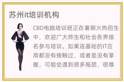 CBD电脑培训班正在暑期火热招生中,欢迎广大师生和社会各界报名参与培训。如果连基础的IT应用都没有接触过,或者是没有掌握,可能会遇到很多瓶颈,很难凸显出自己的应用优势和价值。因为随着社会的发展,技术的更新,不少变革也随着而来,这同样包括计算机业,所以计算机专业的就业前景还是很具看点苏州it培训机构学费的。参加IT培训,一个合适的培训机构很是主要,如许能力事半功倍。it培训班的作用非常丰富,主要是针对同学的能力和学习目标,安排教学计划,比如不少同学的it基础都不够扎实,老师可提供更多入门级的it训练课程,使大家进步更快。而苏州it培训班就非常的不错。苏州港IT培训学校学风非常好,主要原因是学生都是花了很贵的费用,所以也希望能够透过这些费用物有所值,提升自身的专业能力,这样才不会浪费资金。