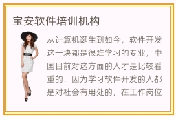 从计算机诞生到如今,软件开发这一块都是很难学习的专业,中国目前对这方面的人才是比较看重的,因为学习软件开发的人都是对社会有用处的,在工作岗位中最离不开的就是电脑,而把软件开发专业学好的话会帮助更多的人,会完成你自己的梦想。软件编程辅导班真的有用吗,多数网络辅导班的课程都非常有用,原因在于这些学校的教育水平不错,内容也十分全面,更注重同学的理论和应用,所以同学可以把各种书本的内容掌握到位,能够带来非常好的变化,学习效果也相当有保障。宝安软件培训学校的机构在办学成果优良的有:宝安北大青鸟,中软卓越,达内教育等。但若得到老师的指点,便可接触更多软件开发的应用,也能了解软件开发时需要的技能。而正因为宝安软件开发培训水平高,宝安软件开发培训班也自然很多,这导致一些去宝安学习软件开发的人来说有利有弊。