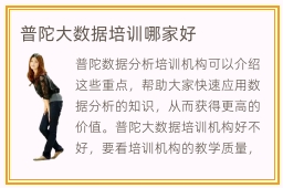 普陀数据分析培训机构可以介绍这些重点,帮助大家快速应用数据分析的知识,从而获得更高的价值。普陀大数据培训机构好不好,要看培训机构的教学质量,环境氛围,学生的成果。普陀大数据培训优势主要是小班教学,很多老师都能够及时发现学生的弱点和缺陷,进行及时的更正,往往效果会更加突出。大数据就业前景是非常好的,首先是可以充分发挥出时代的优势,找到比较重要的岗位,从而拥有更大的表现舞台。并且始终精益求精,不断创新,凭借高标准的师资团队和完善的社会服务队伍,赢得大量学生的认可。有着丰富的培训经普陀大数据培训班培训的怎么样验。大数据入门基础会让大家的专业能力更强,知识范围也更广阔,技术也会更突出,将来表现更好。如何挑大数据培训机构,应该看看没有培训班的教学方法、授课的方式、上课时间等等,一部分学生平时要上班,时间非常紧凑,不得不选择晚上或周末的时间上课。