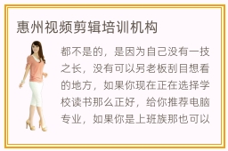 惠州视频剪辑培训机构
