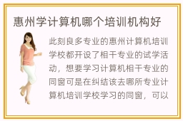 此刻良多专业的惠州计算机培训学校都开设了相干专业的试学活动,想要学习计算机相干专业的同窗可是在纠结该去哪所专业计算机培训学校学习的同窗,可以去参加一下这些惠州计算机培训学校的试学活动,可以亲身休会一下各所惠州计算机培训学校的讲授培训。很多人都会选择计算机培训学校来提升自己的技术手段,从而发挥不可替代的优势,但现在老师也特别多,学校五花八门,所以要对不清楚。惠州计算机学校官方网站向人们全方位展现着惠州计算机培训机构办学初志、讲授特点、拓展项眼以及周外环境等等,议决对惠州电脑学校的领会要更好地接管培训。与此同时,市面上也出现了很多关于计算机方面的培训机构;但是计算机培训行业的发展水平并不是很持平,培训机构之间的发展良莠不齐,导致很多学员错误的选择培训班,从而浪费精力和财惠州计算培训班市场前景力。