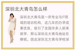 深圳北大青鸟是一所专业与IT领域的培训机构,这几年的办学成果优良,吸引了全国许多人前来就学,那么深圳北大青鸟地址在哪呢。因此深圳北大青鸟学校深受家长们的喜爱,他们的孩子在这里学习他们都很放深圳北大青鸟如何心。深圳北大青鸟在哪里。四周的交通方便。学电脑,就要学的早。所以说,在深圳北大青鸟学习北大青鸟技术还是一个不错的决定深圳北大青鸟培训费用呢。去了之后你会觉得原来选择一所好的学校是那么的重要哇,余生很长要过就过有意思的人生。深圳北大青鸟地址位于深圳市西城区北礼士路100号,作为一所优秀的北大青鸟培训机构,办学多年来,毕业生数十万,成功就业或者创业的占绝大多数,只要你肯学,有相关的兴趣爱好,再加上深圳深圳北大青鸟的培养,那么就意味着离成功迈出了一深圳北大青鸟教学资源步。