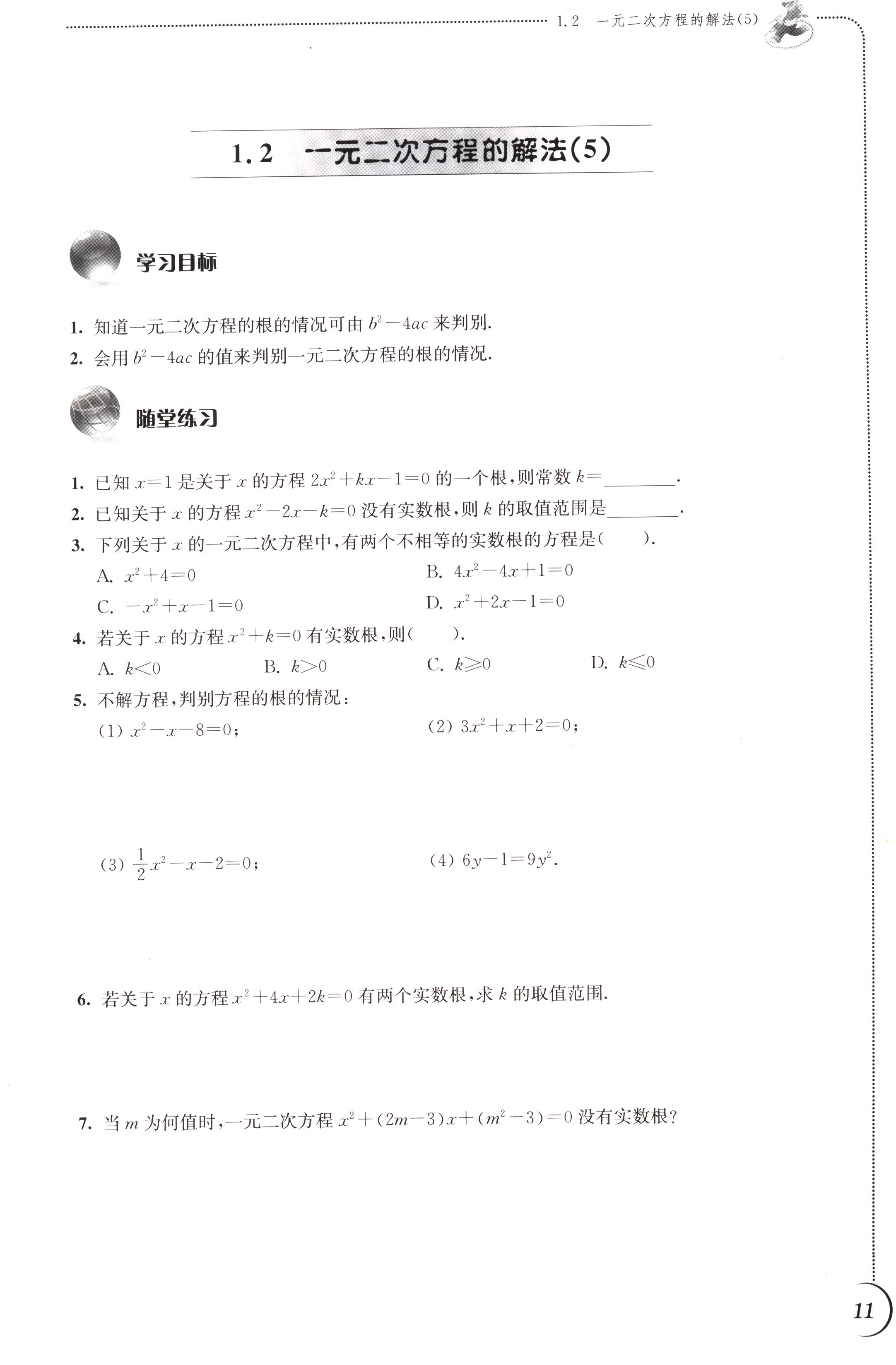 1.2 一元二次方程的解法(5)第11页全部答案解析