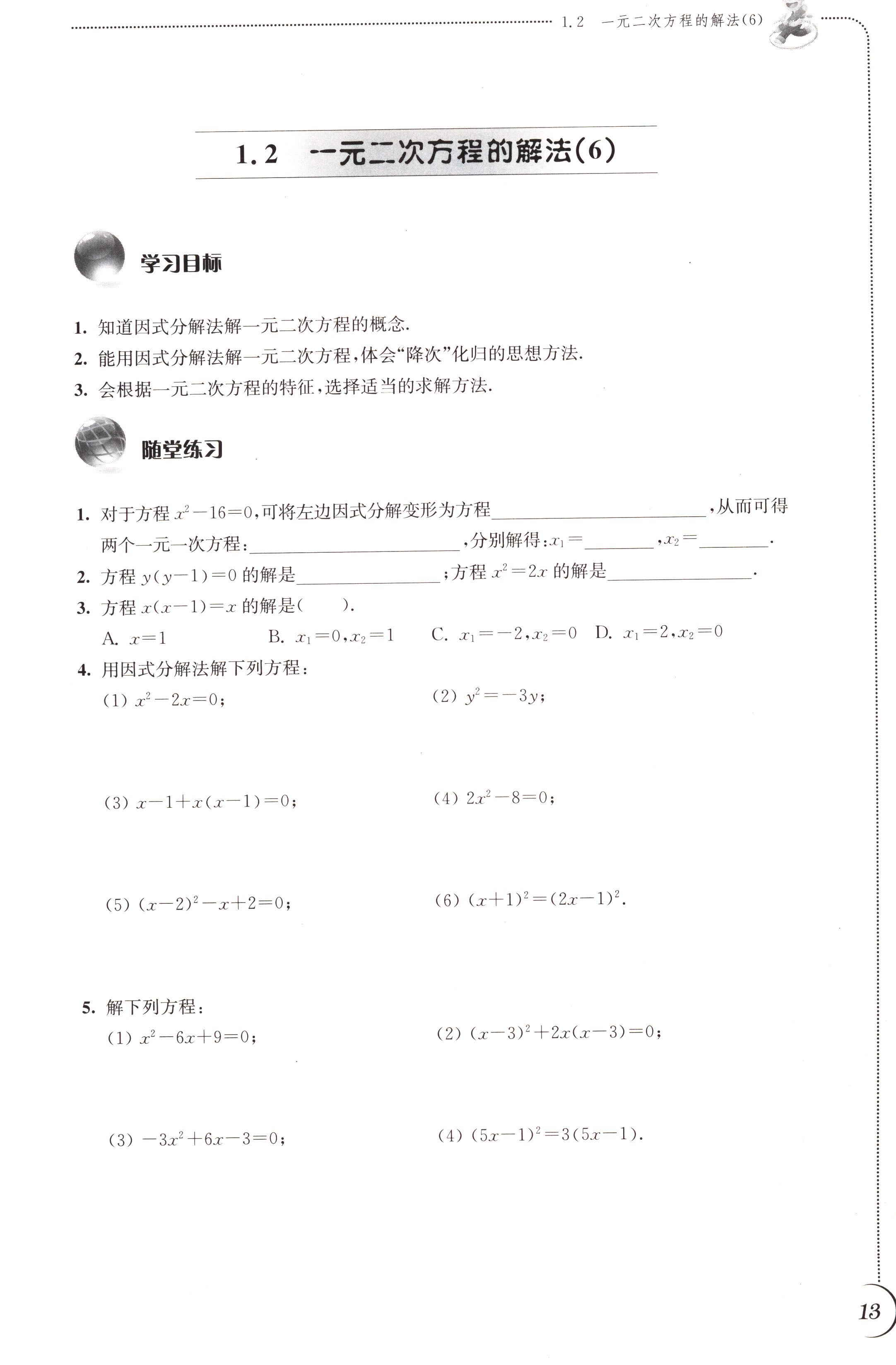 1.2 一元二次方程的解法(6)第13页全部答案解析