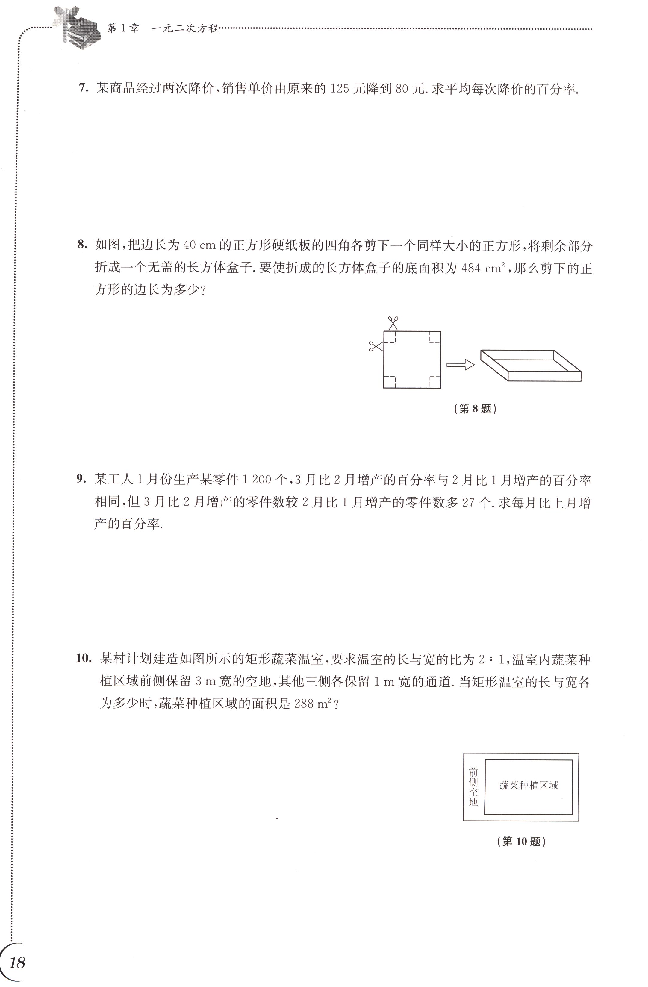 1.4 用一元二次方程解决问题(1)第18页全部答案解析