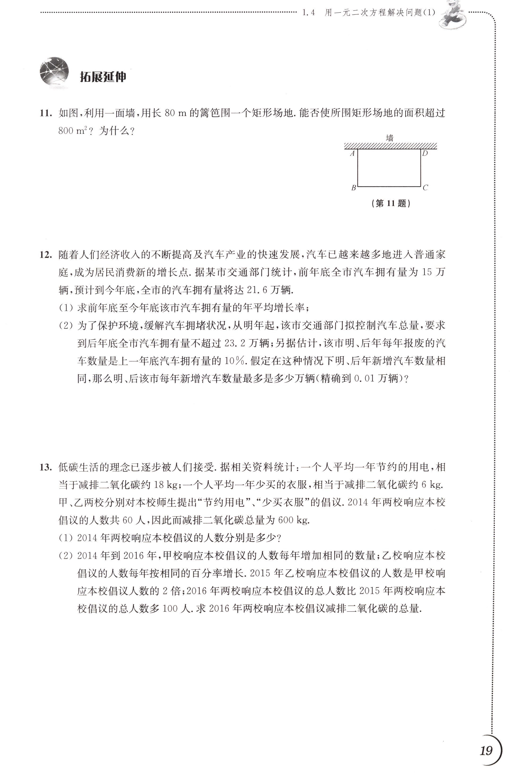 1.4 用一元二次方程解决问题(1)第19页全部答案解析