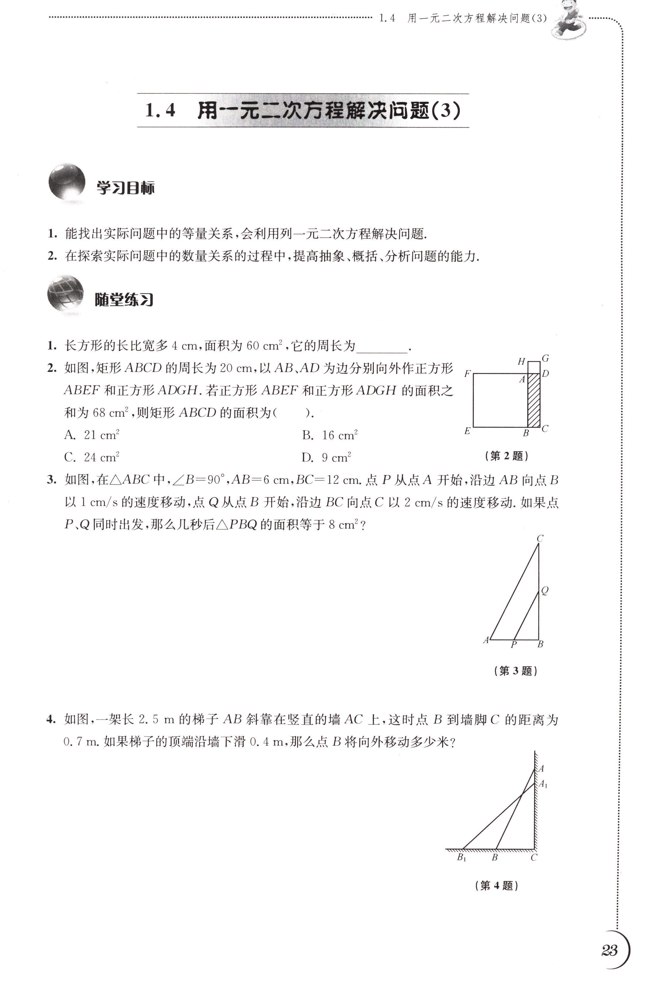 1.4 用一元二次方程解决问题(3)第23页全部答案解析