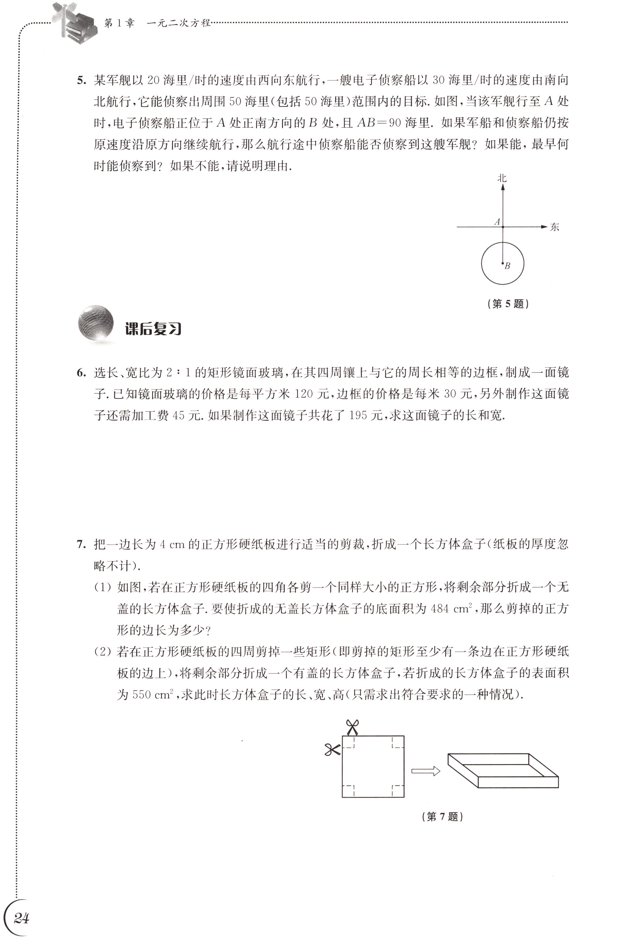 1.4 用一元二次方程解决问题(3)第24页全部答案解析
