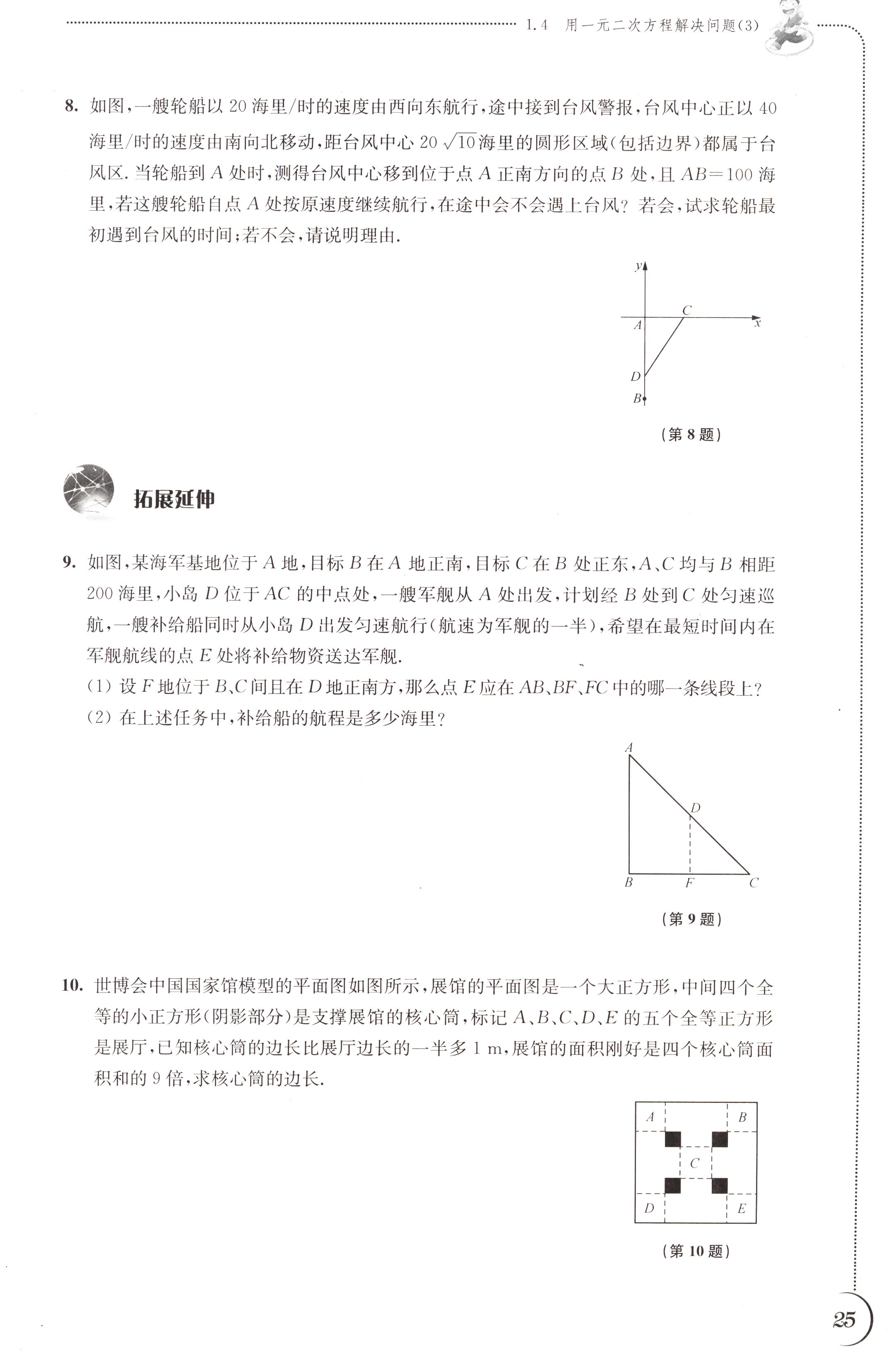 1.4 用一元二次方程解决问题(3)第25页全部答案解析