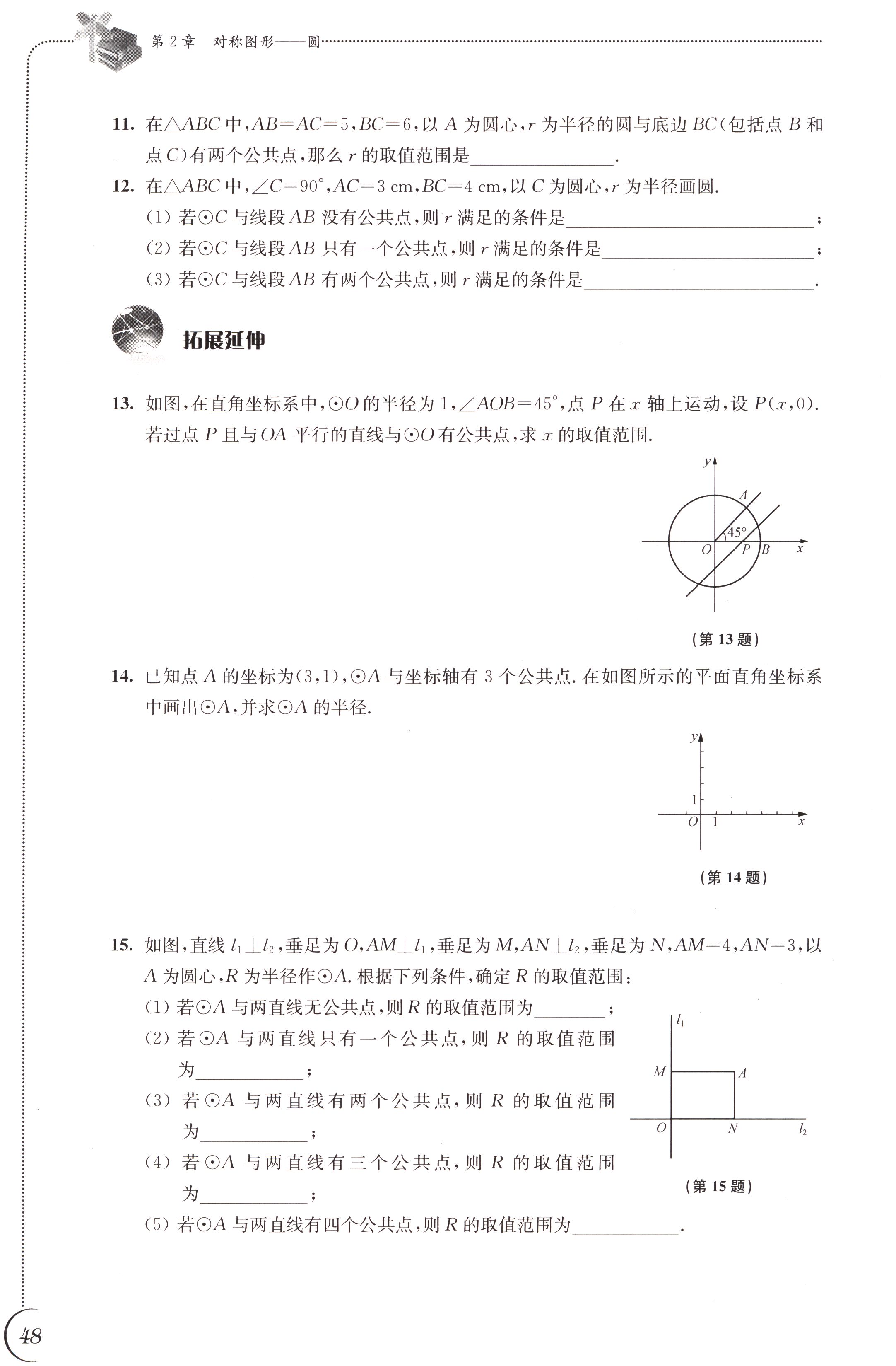 2.5 直线与圆的位置关系(1)第48页全部答案解析
