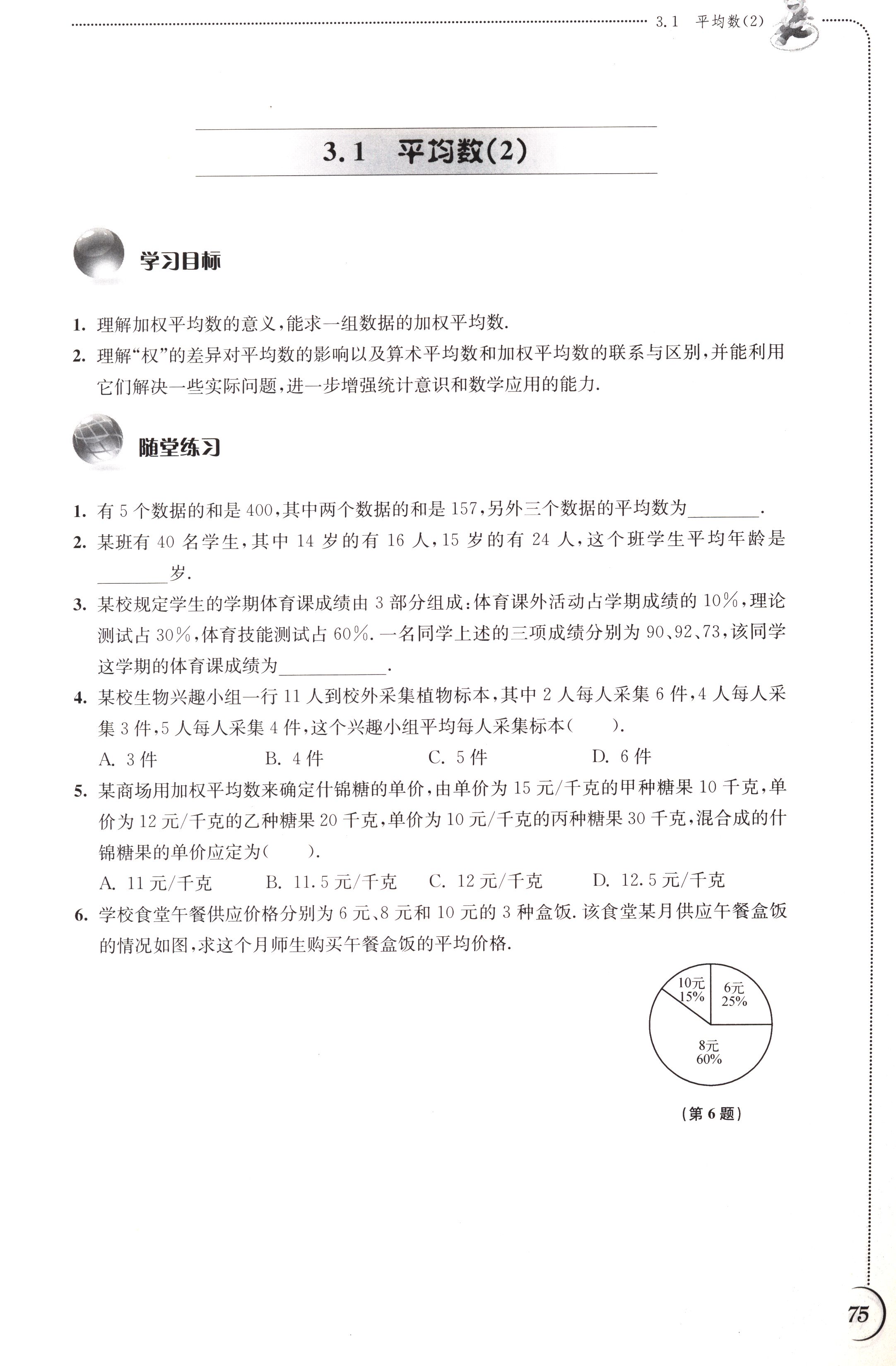 3.1 平均数(2)第75页全部答案解析