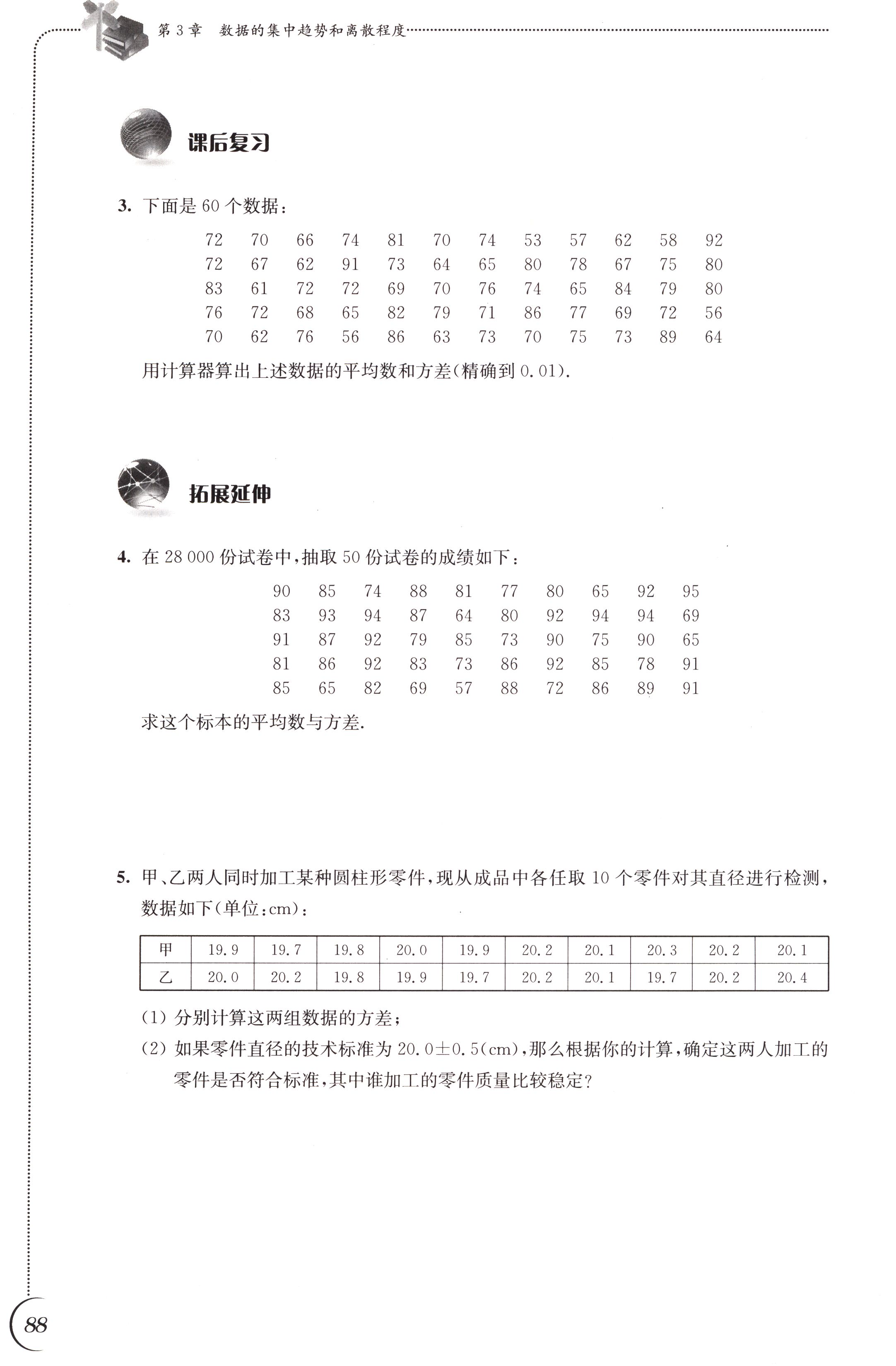 3.5 用计算器求方差第88页全部答案解析
