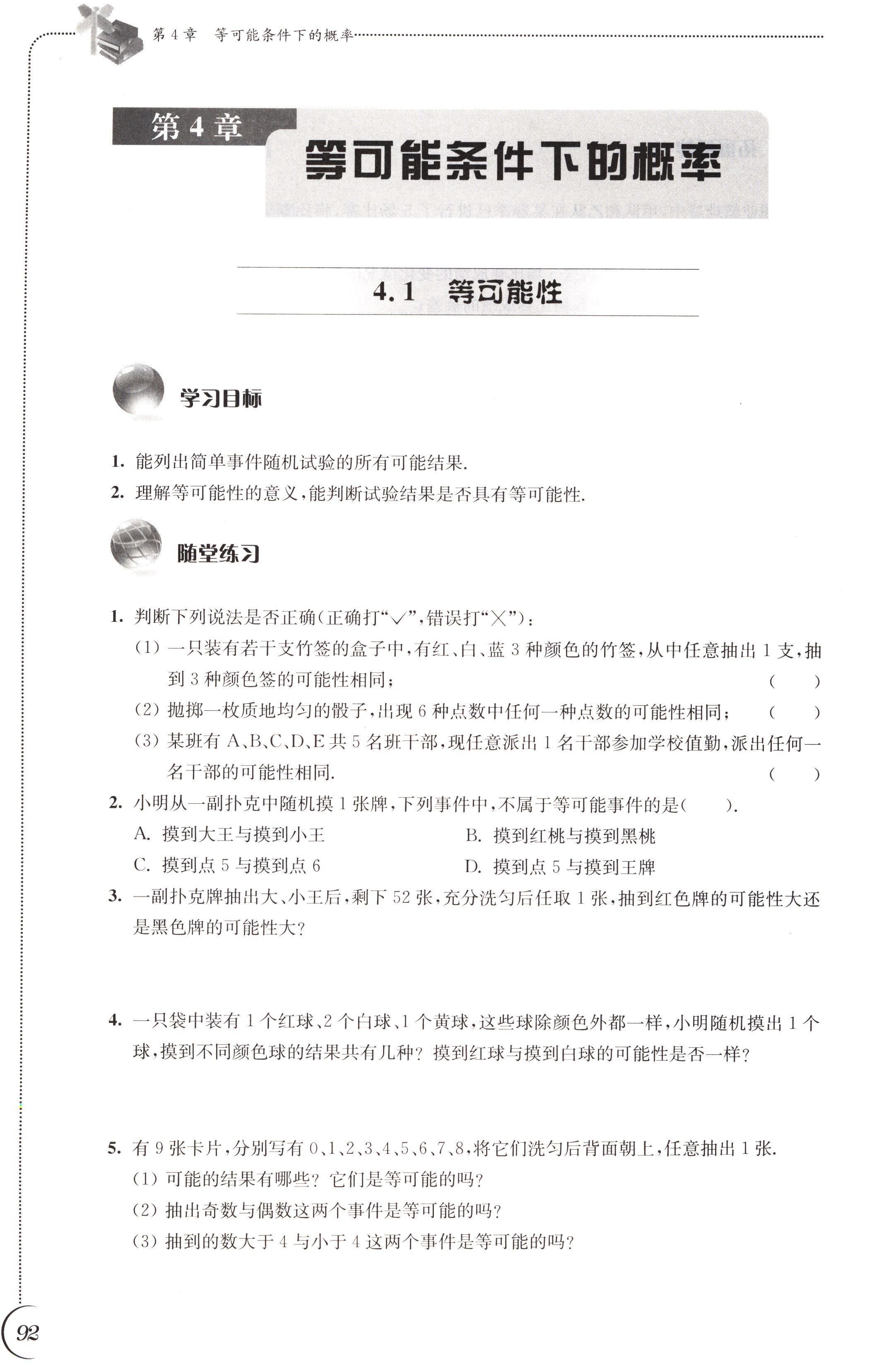 4.1 等可能性第92页全部答案解析