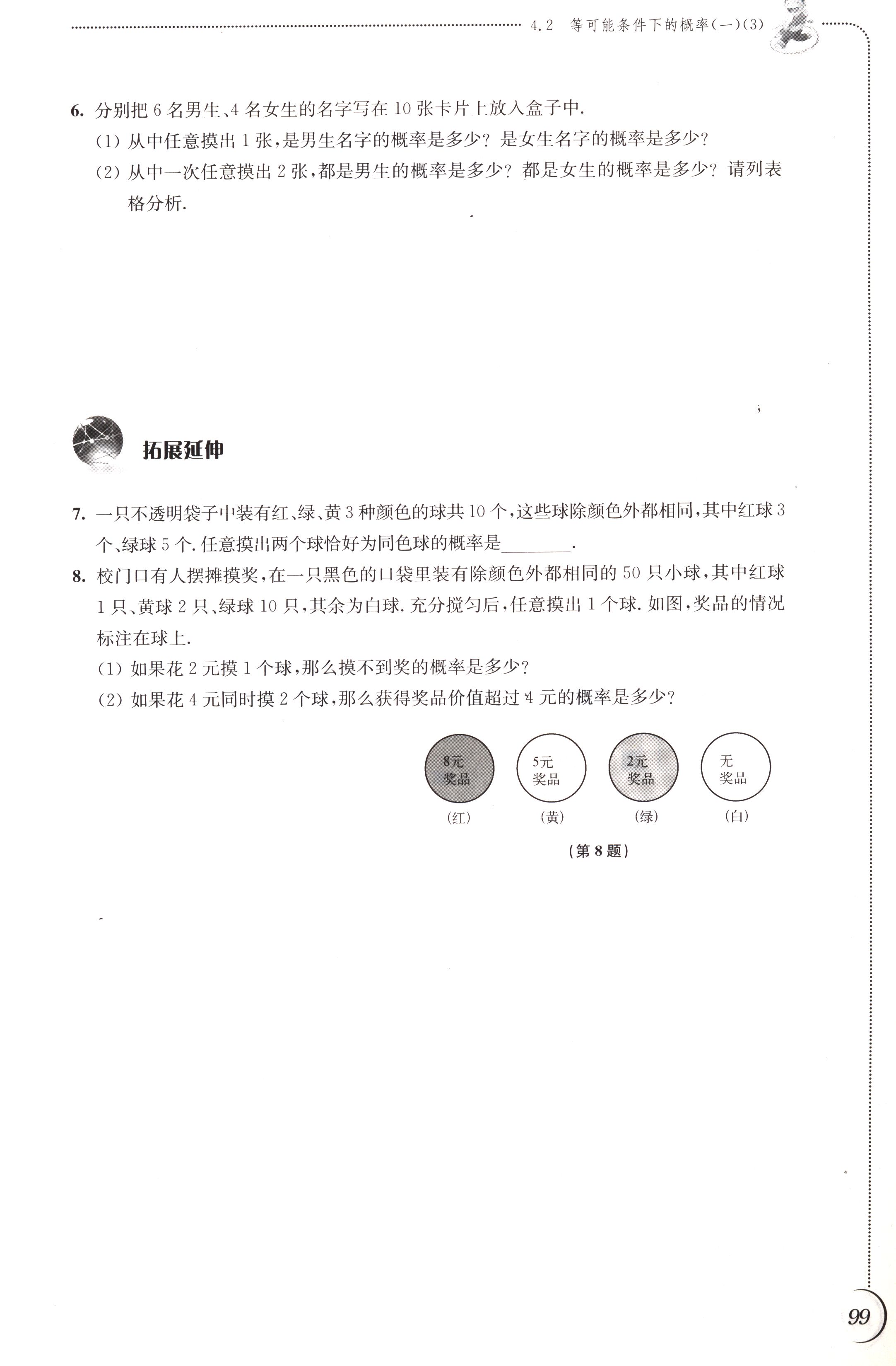 4.2 等可能条件下的概率(一)(3)第99页全部答案解析