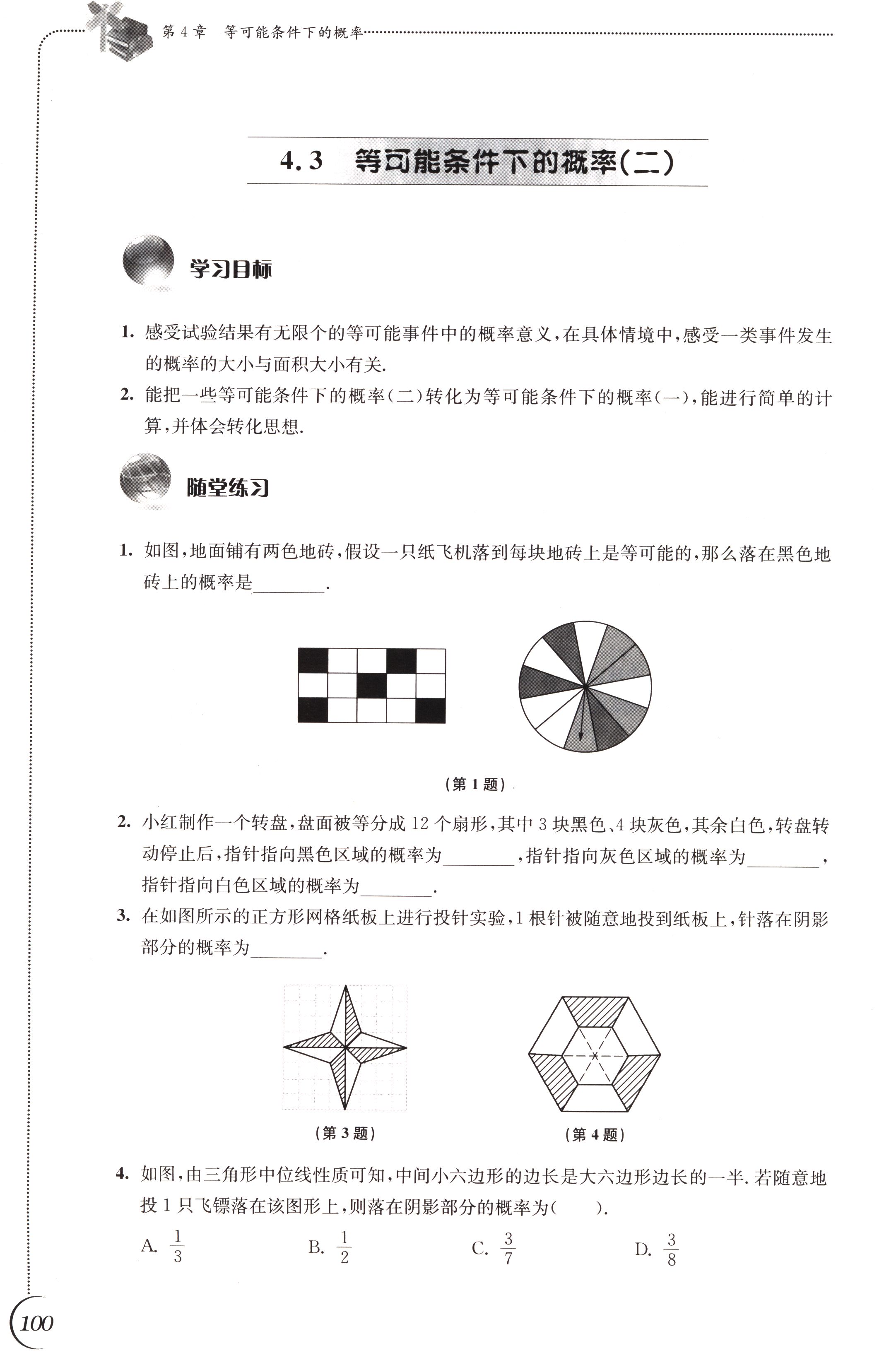 4.3 等可能条件下的概率(二)第100页全部答案解析