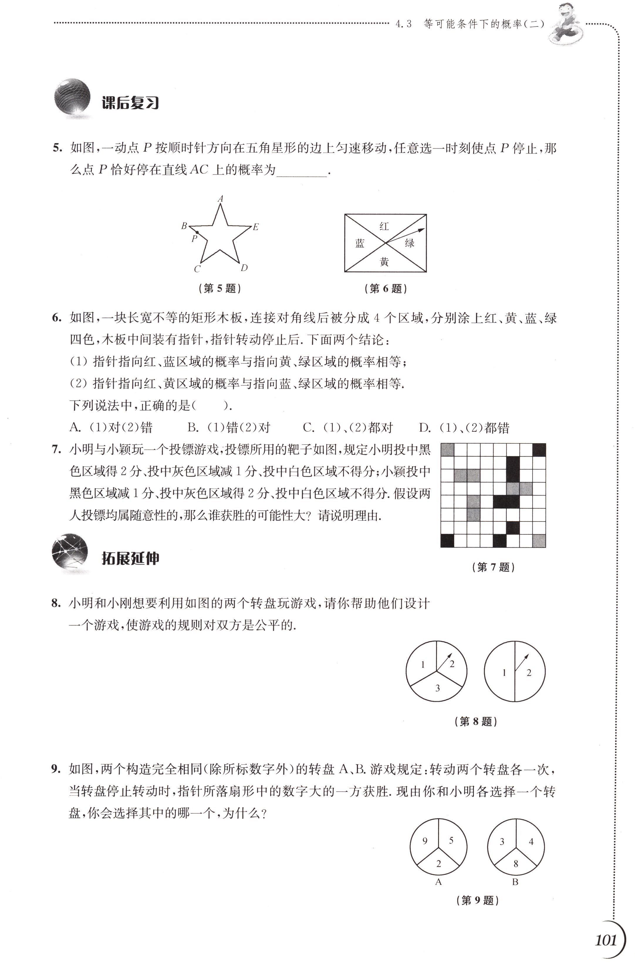 4.3 等可能条件下的概率(二)第101页全部答案解析