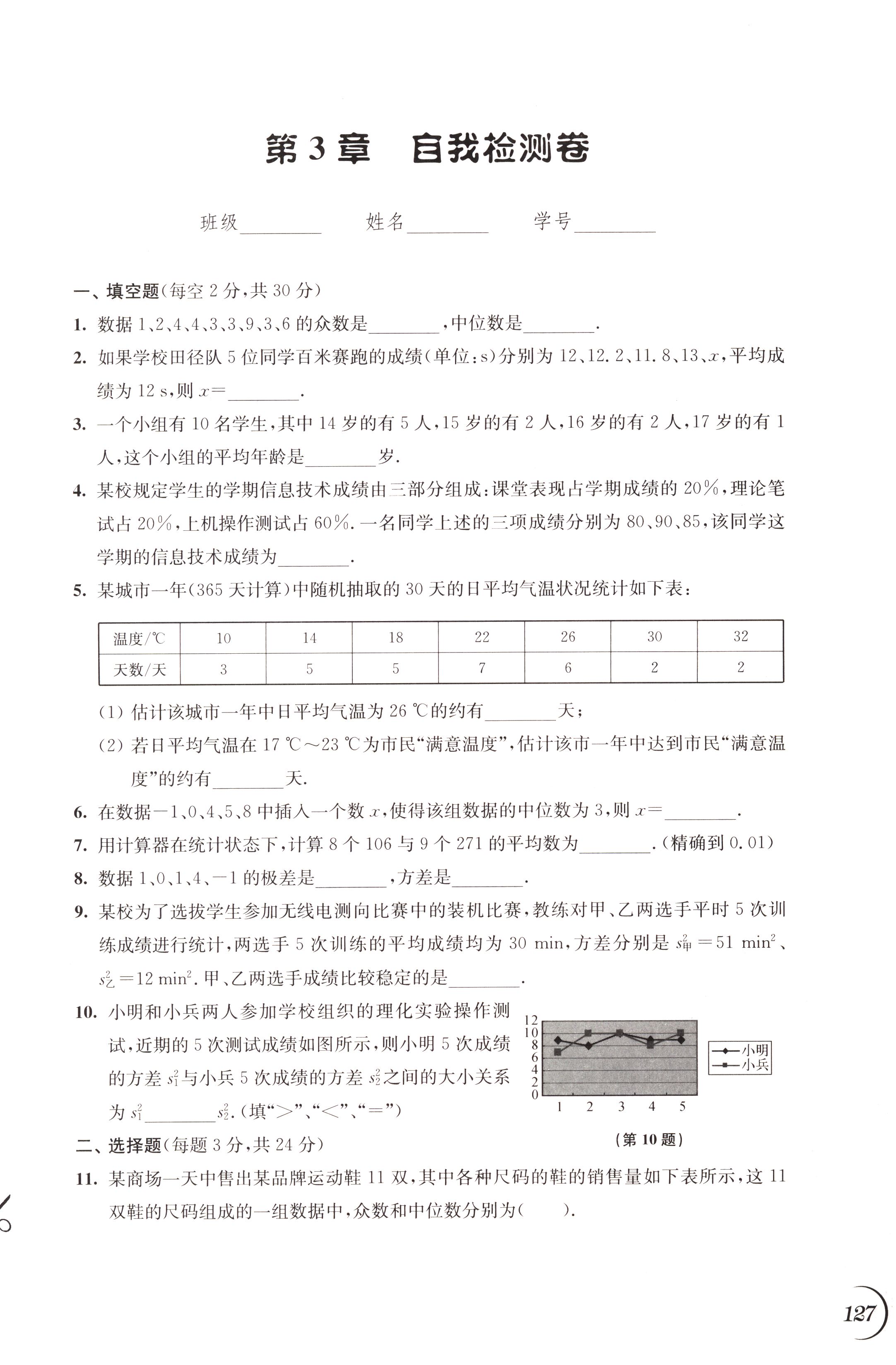 第3章 自我检测卷第127页全部答案解析