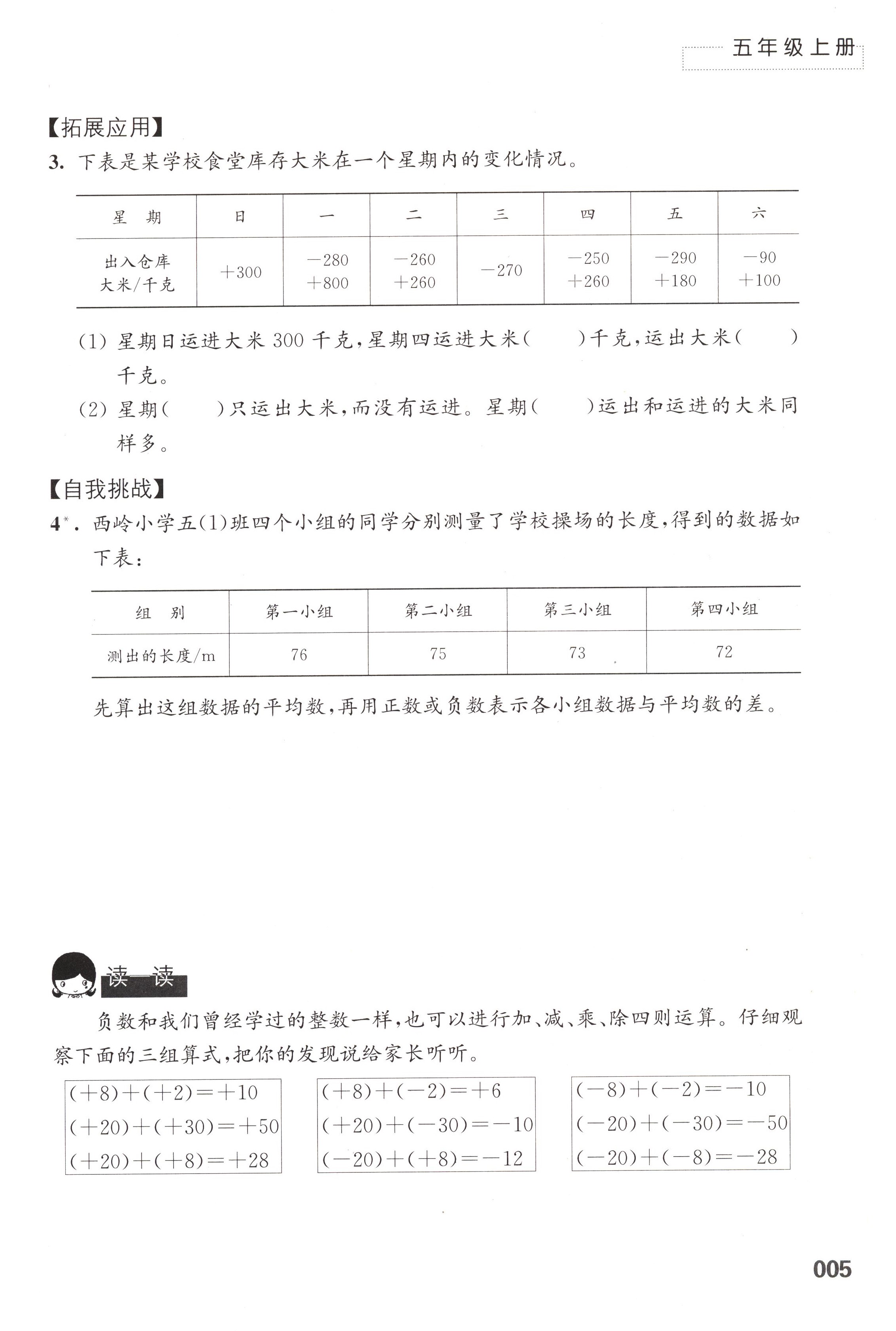 一 负数的初步认识第5页全部答案解析