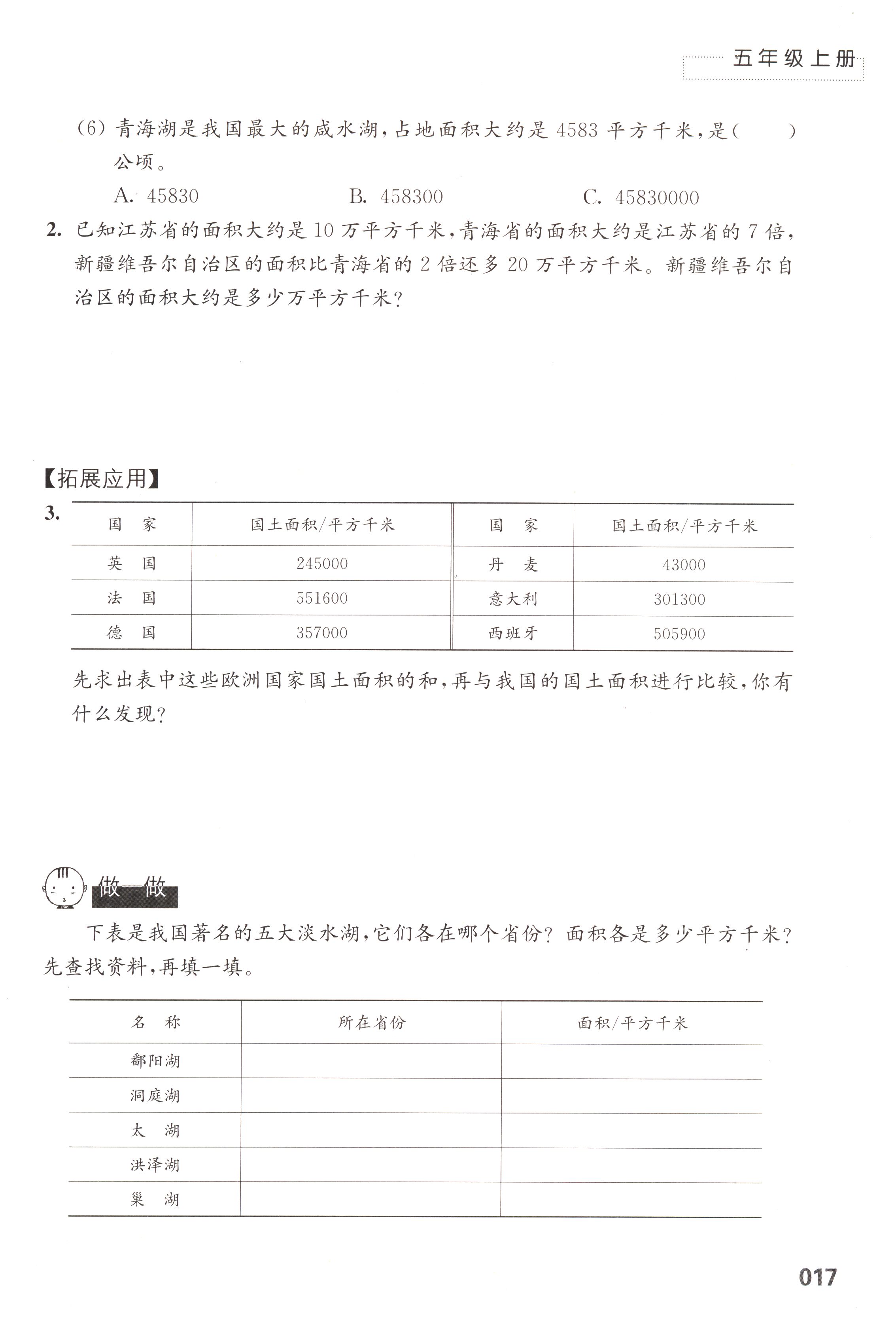 苏教版五年级数学练习与测试上下册答案