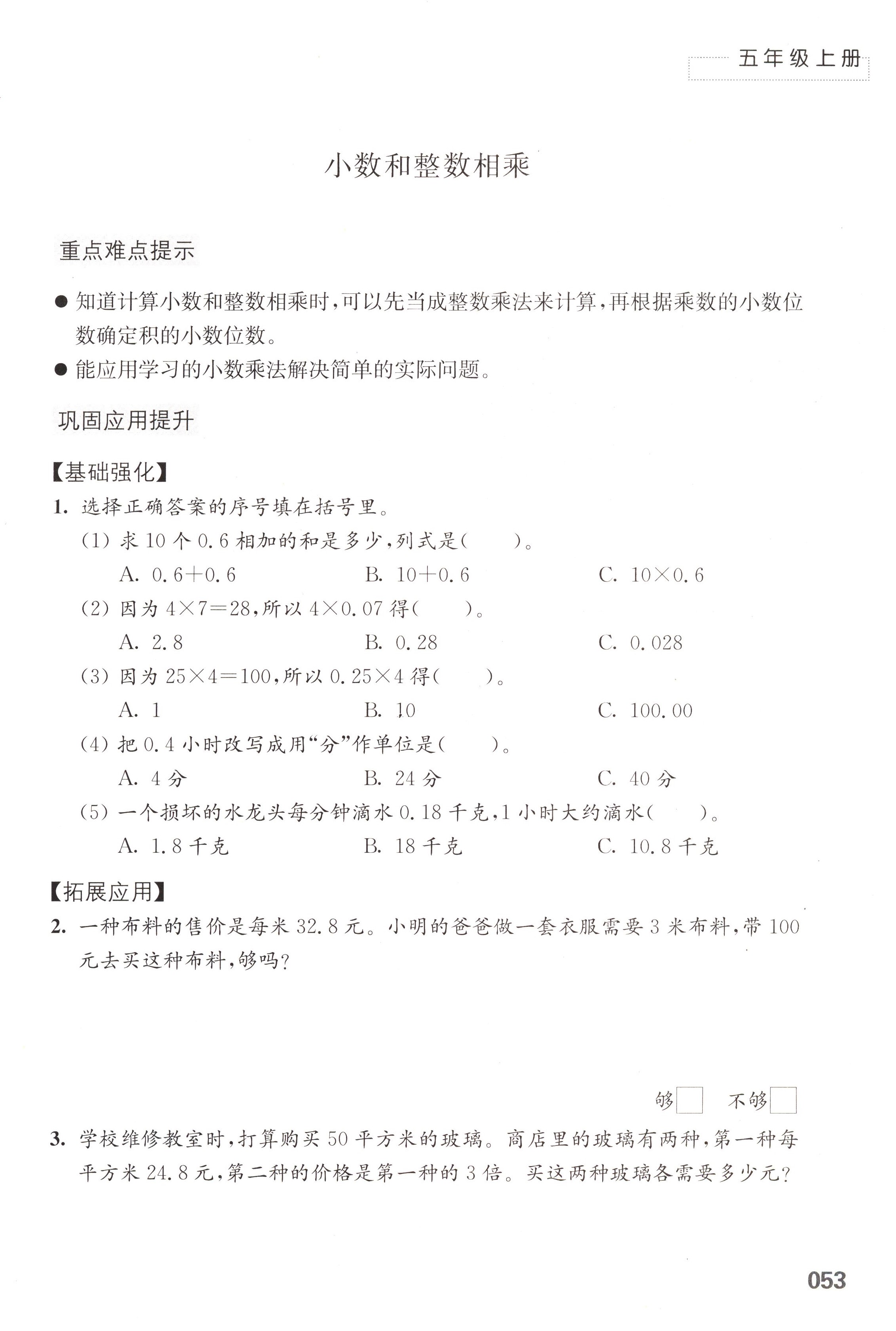 五 小数乘法和除法第53页全部答案解析