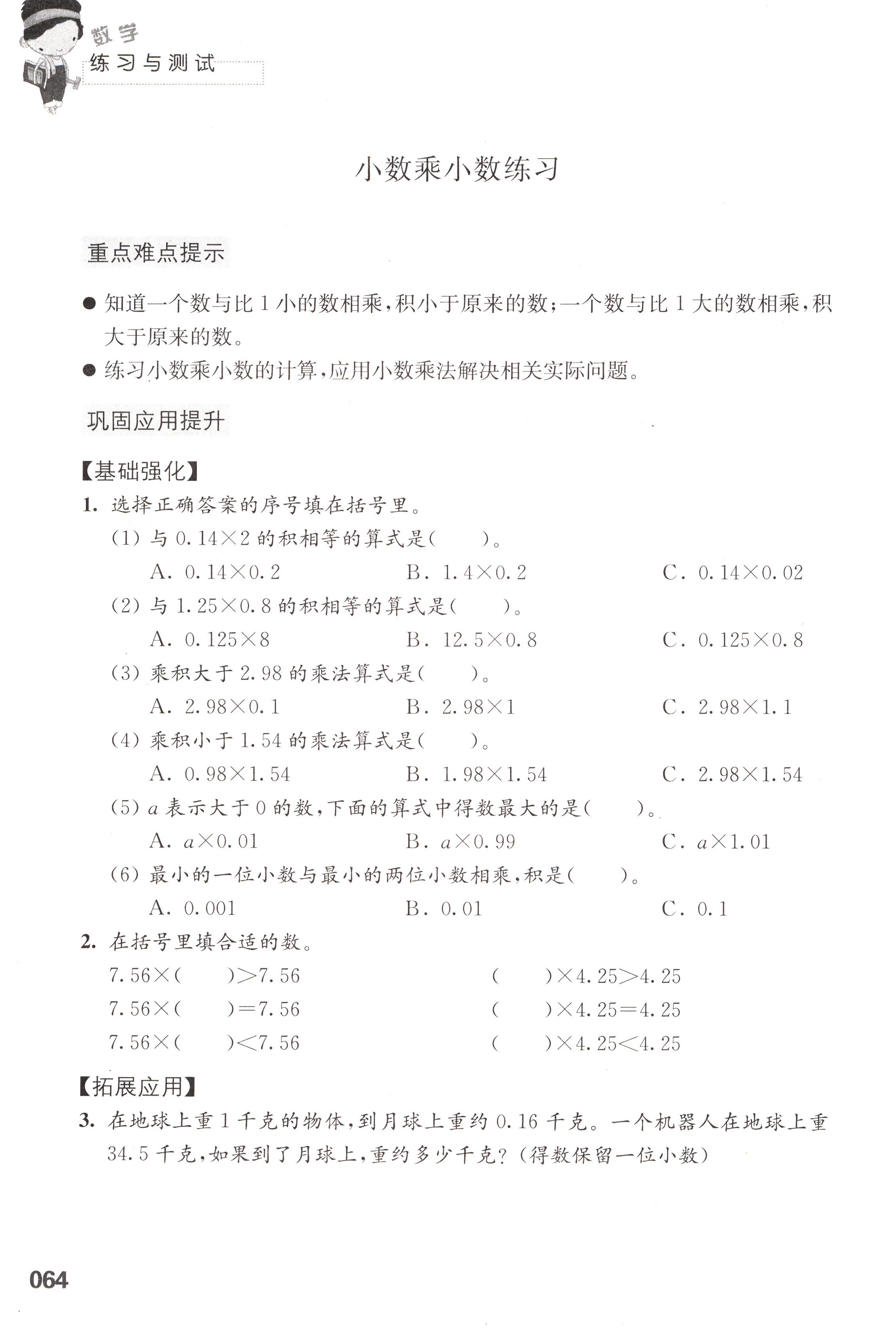 五 小数乘法和除法第64页全部答案解析