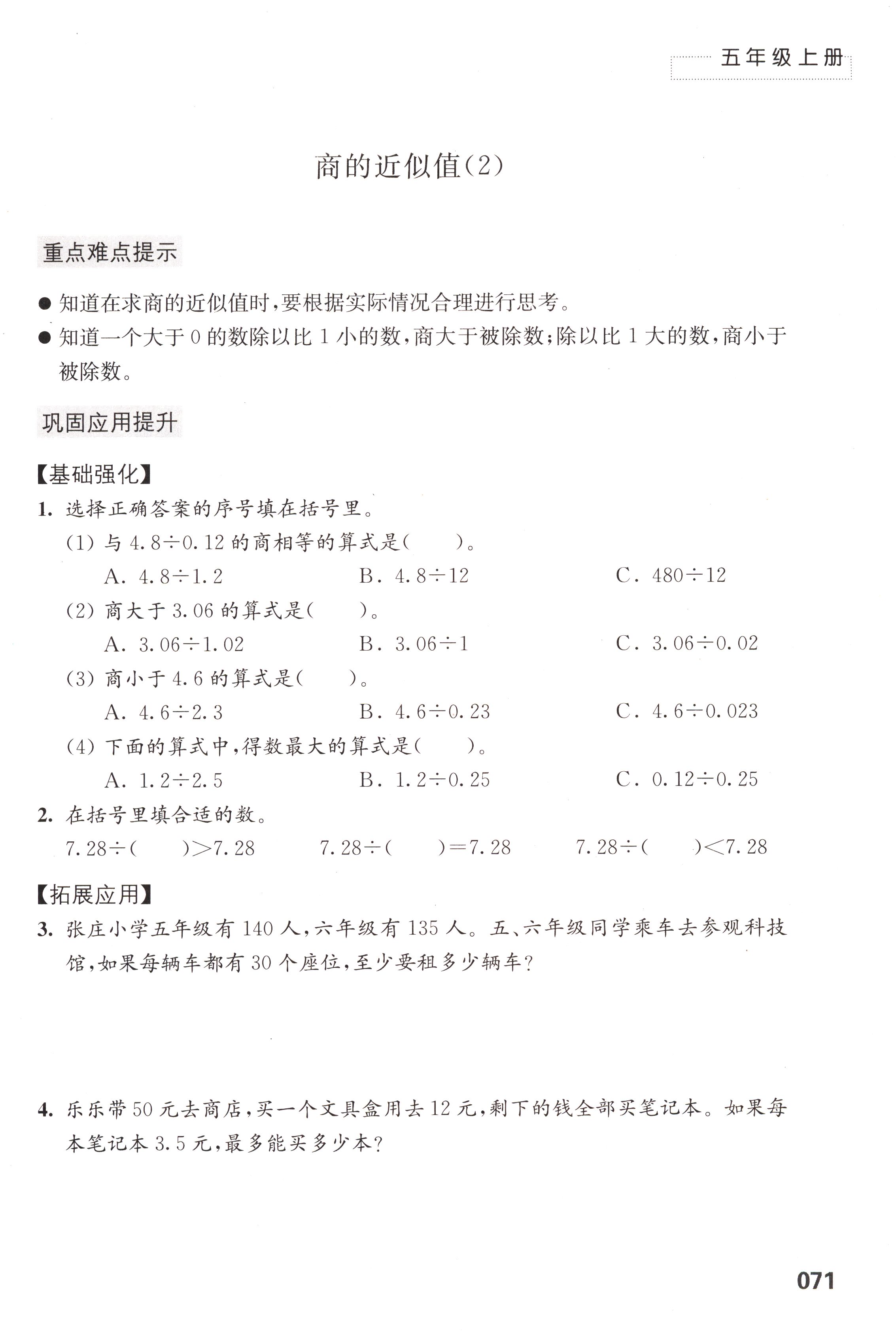 五 小数乘法和除法第71页全部答案解析