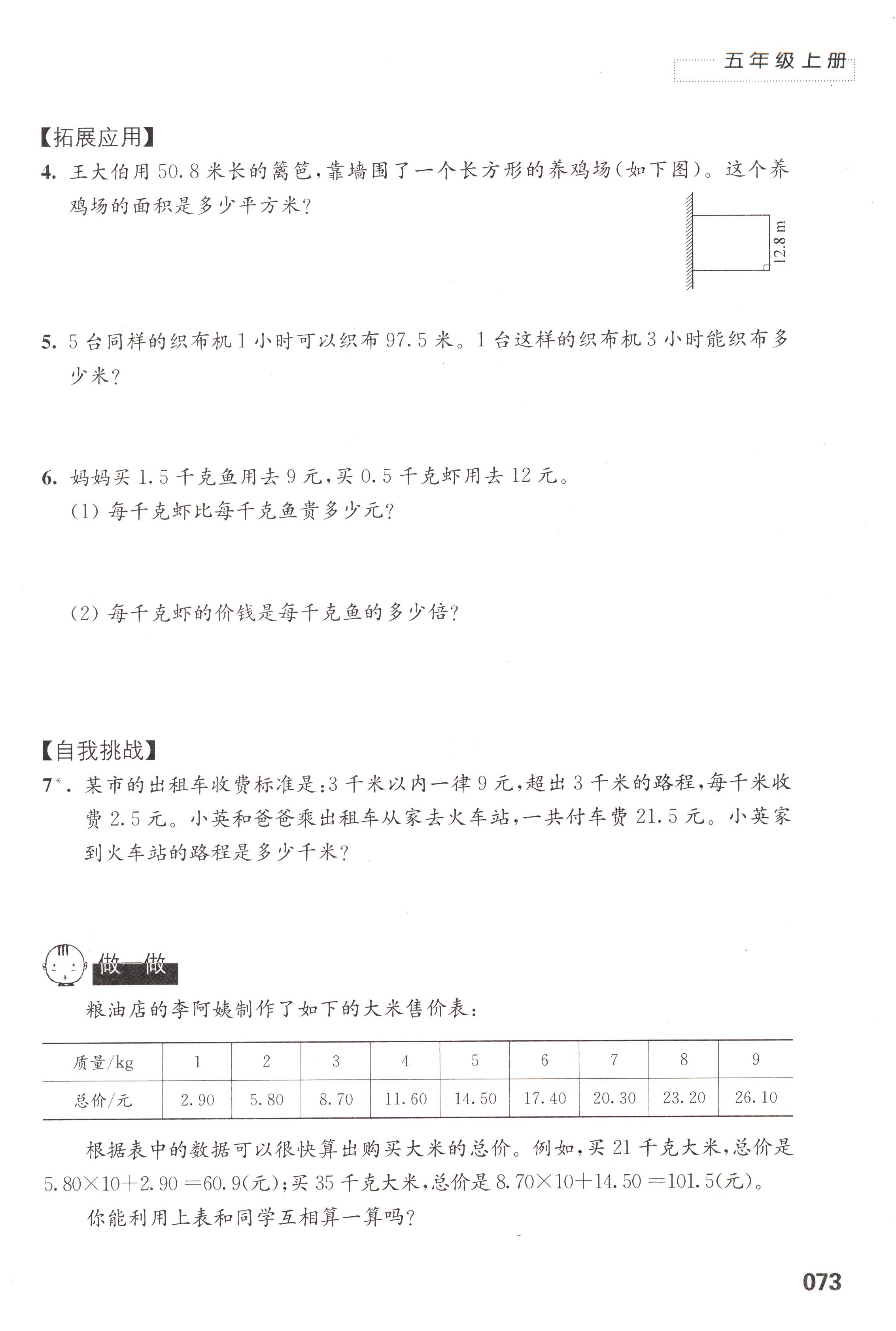 五 小数乘法和除法第73页全部答案解析