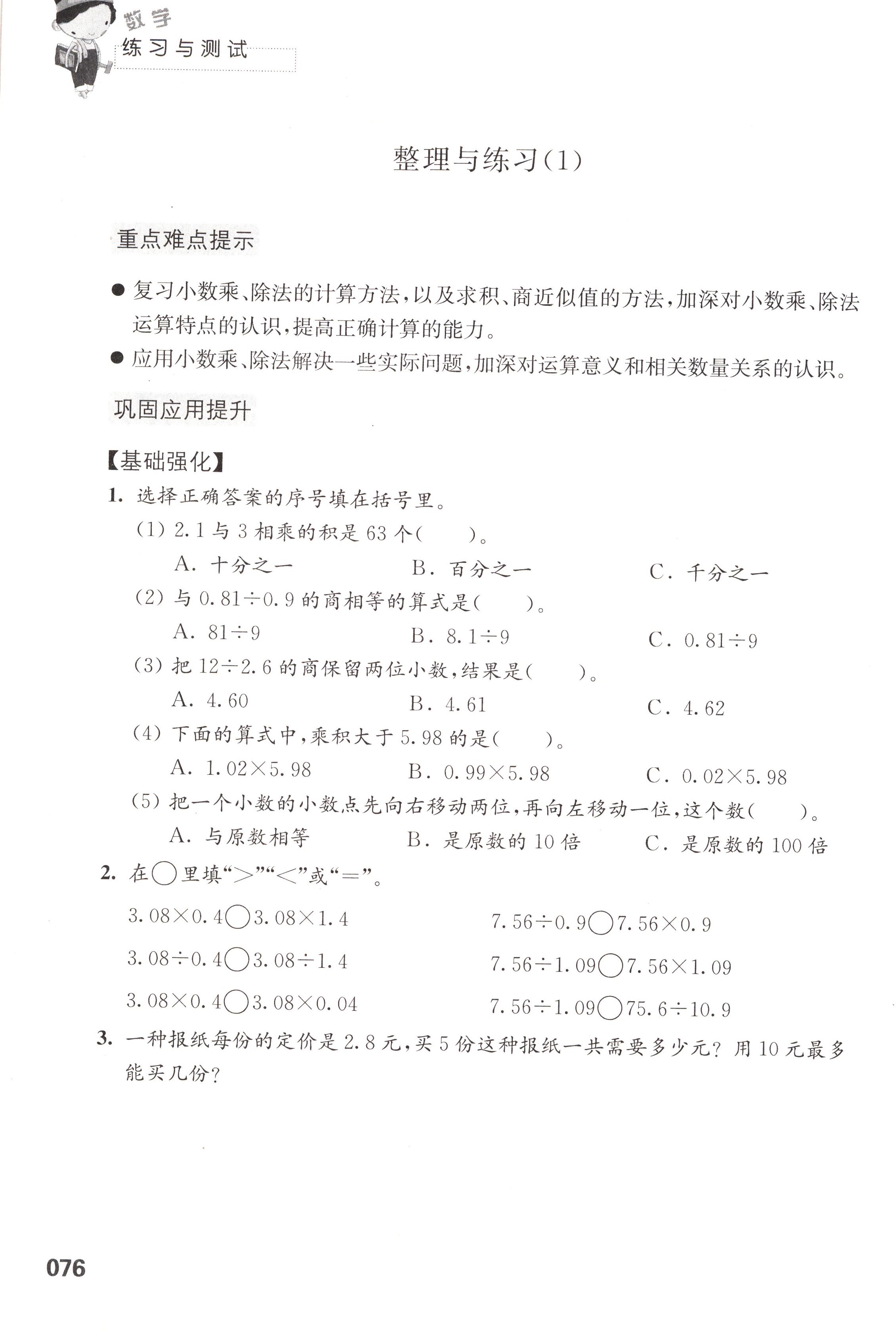 五 小数乘法和除法第76页全部答案解析