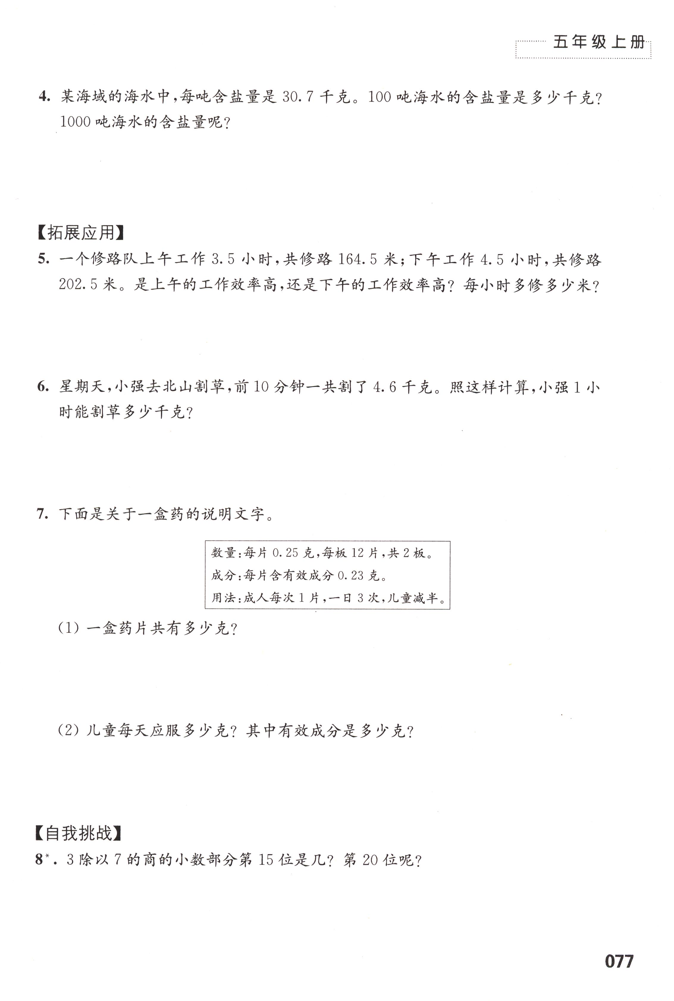 五 小数乘法和除法第77页全部答案解析