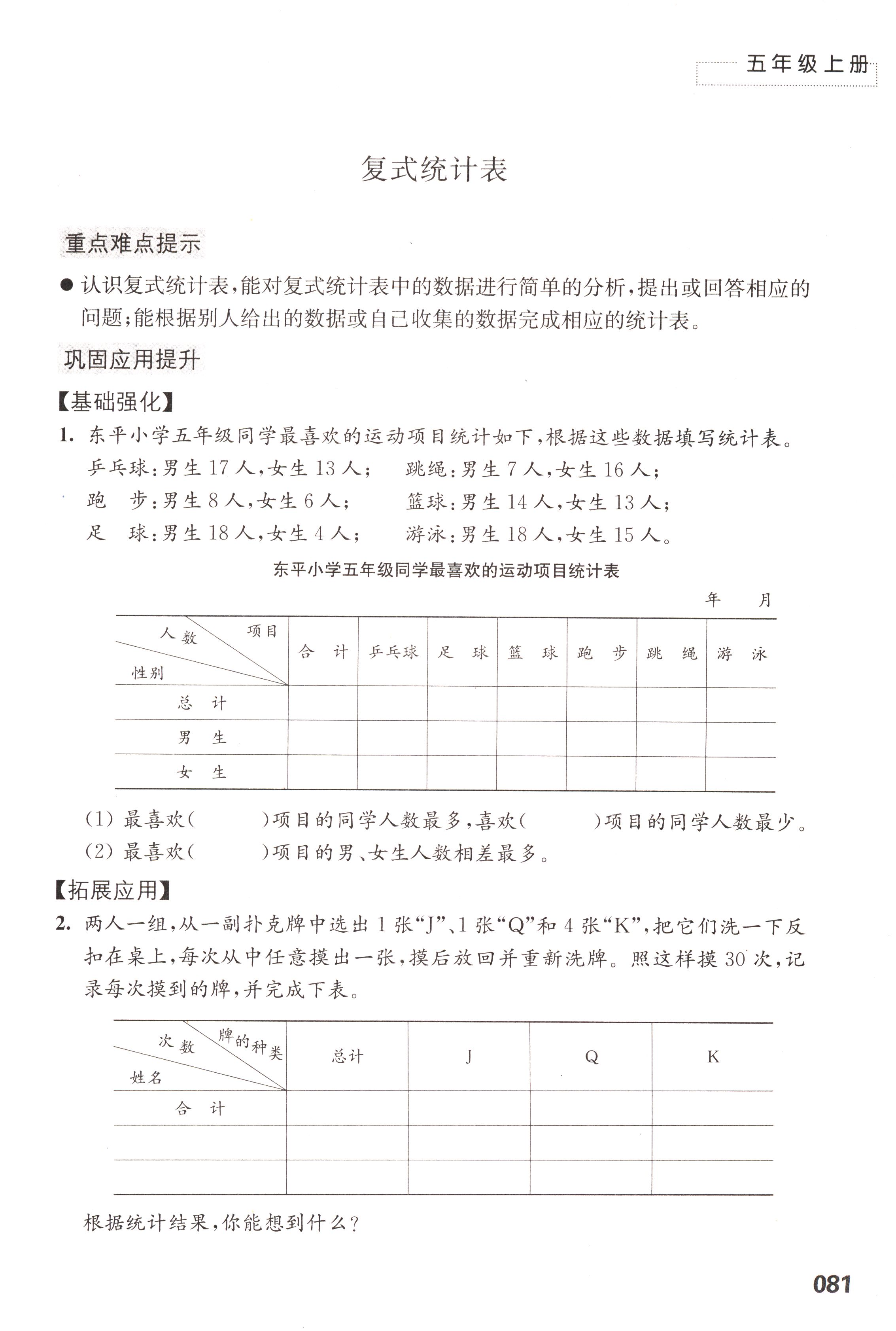 六 统计表和条形统计图(二)第81页全部答案解析
