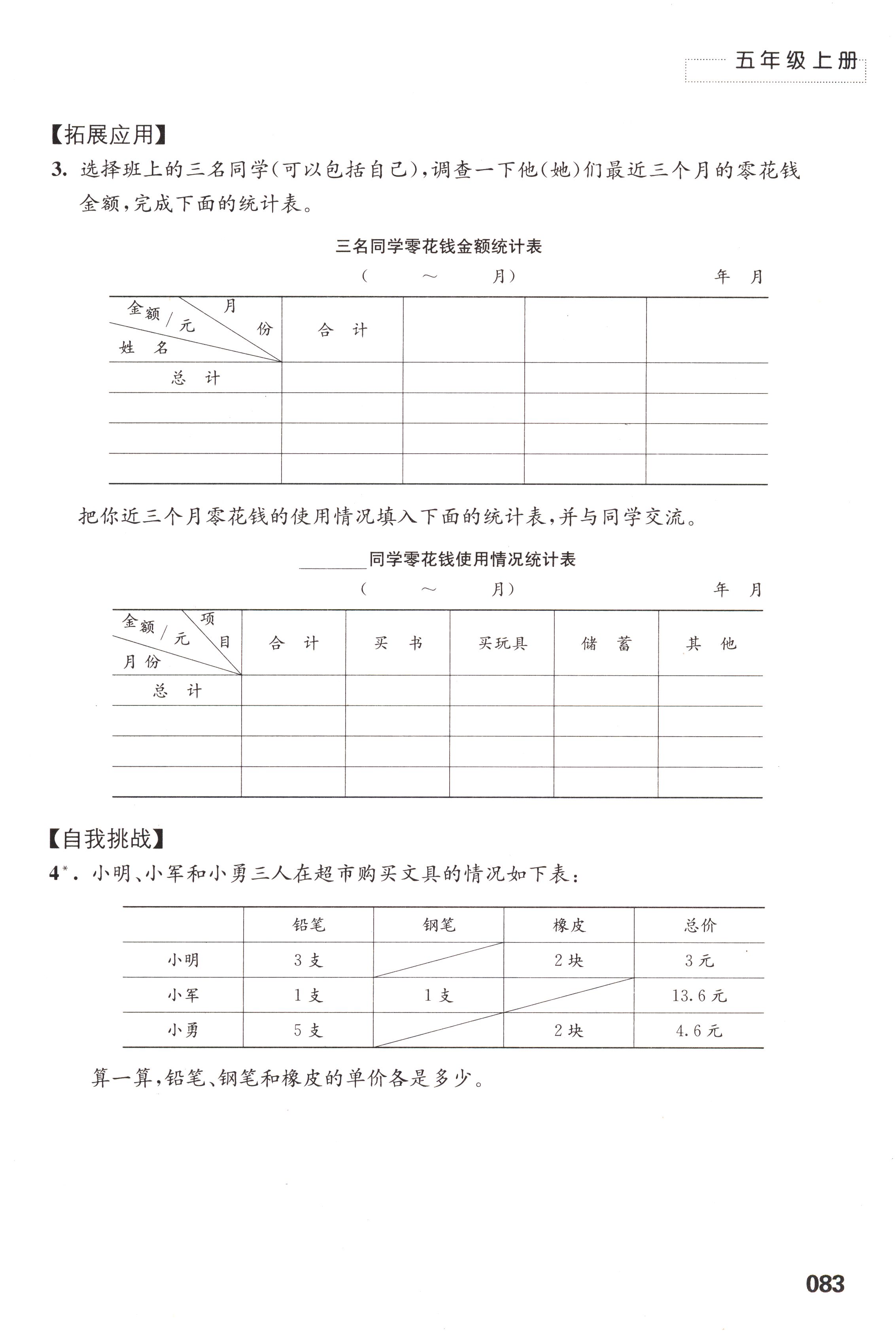 六 统计表和条形统计图(二)第83页全部答案解析