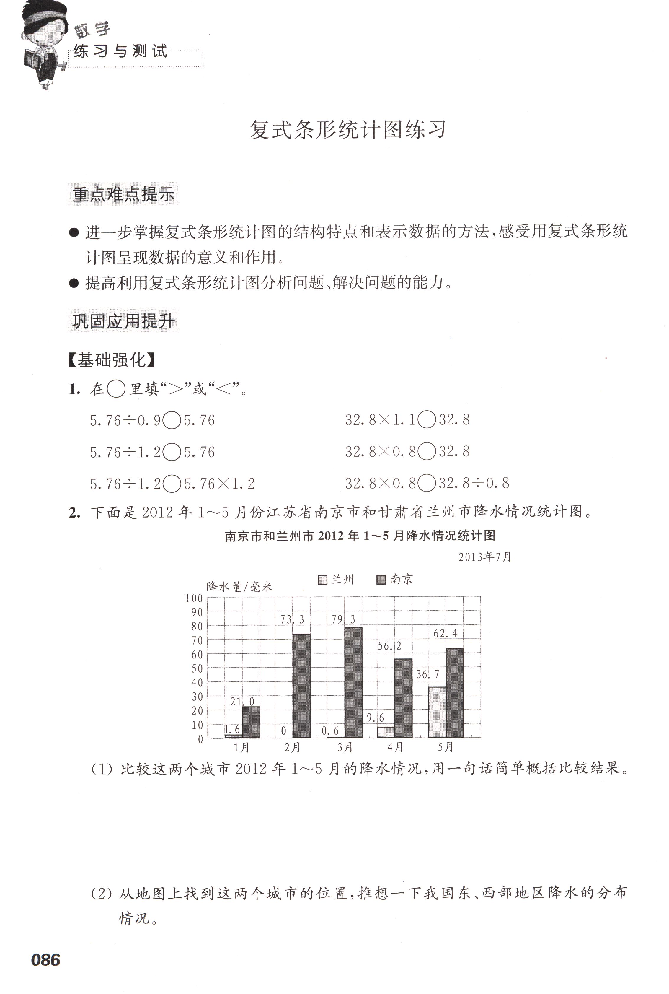 六 统计表和条形统计图(二)第86页全部答案解析