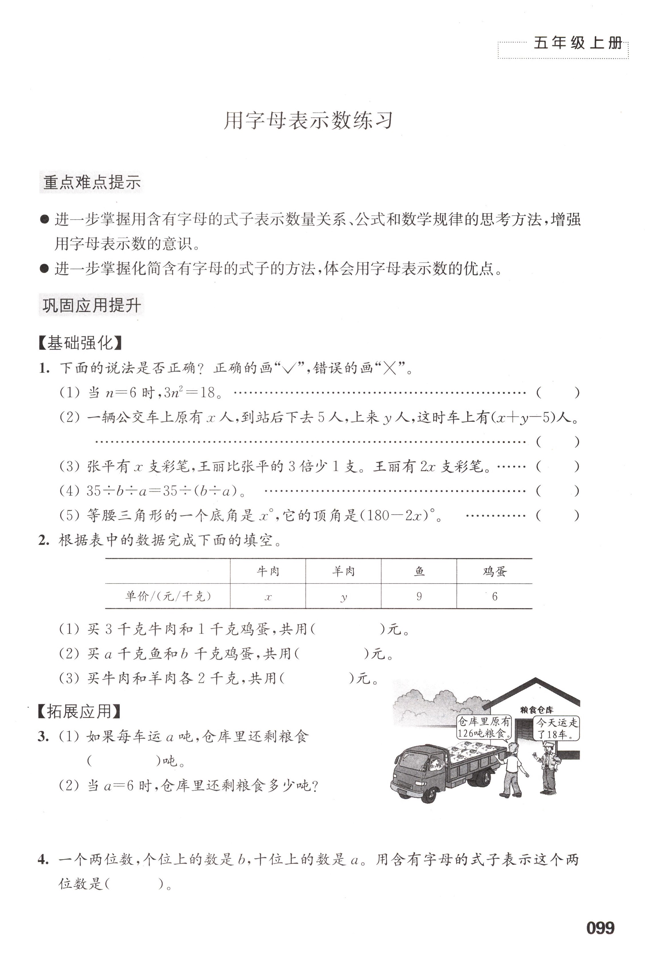 八 用字母表示数第99页全部答案解析