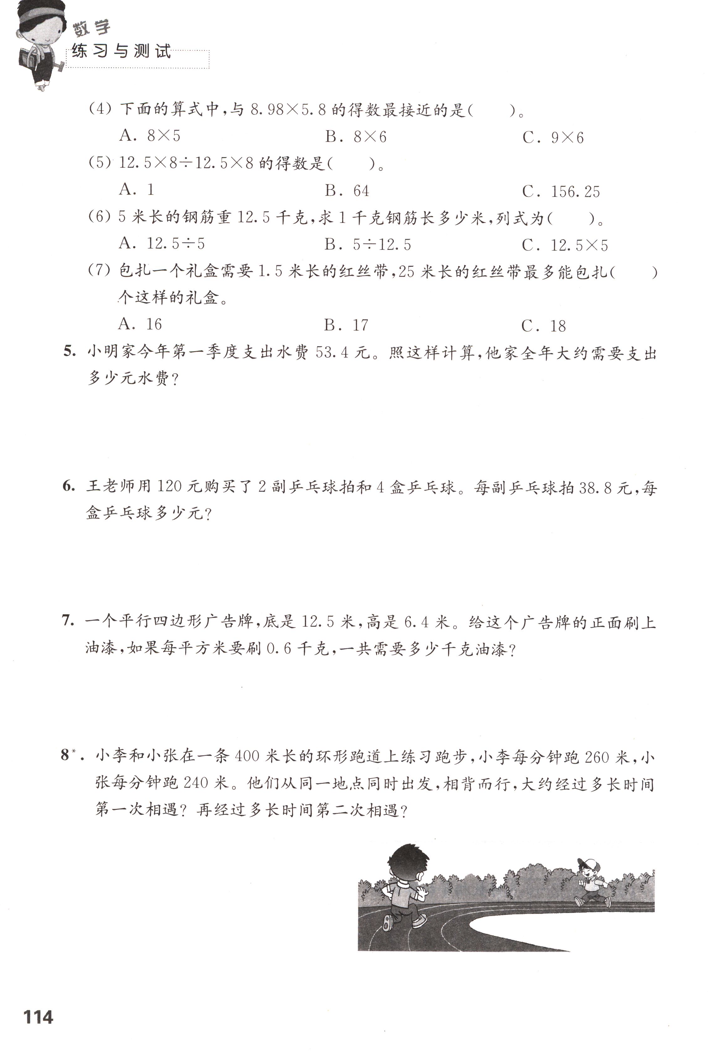 苏教版五年级数学练习与测试上下册答案