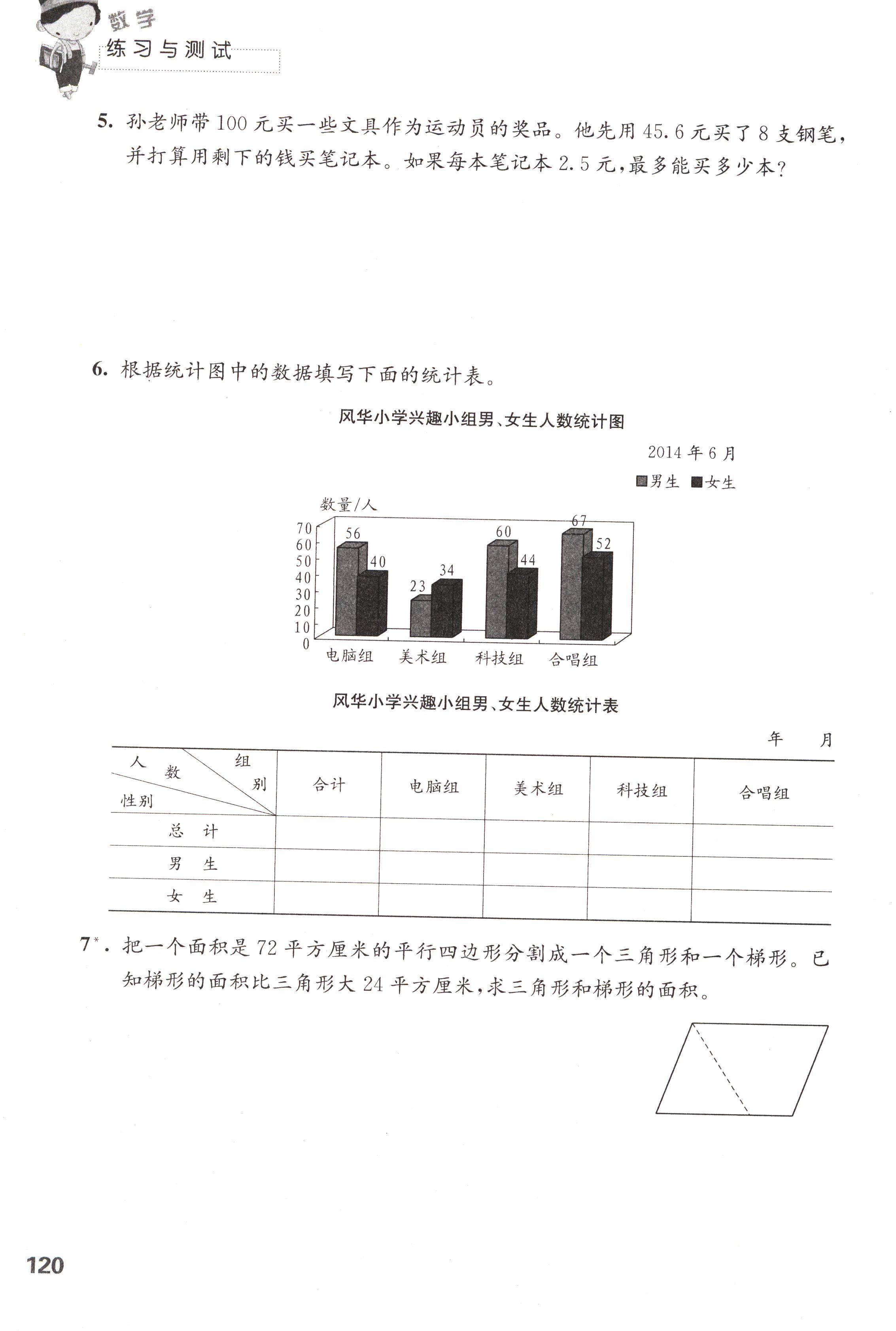苏教版五年级数学练习与测试上下册答案