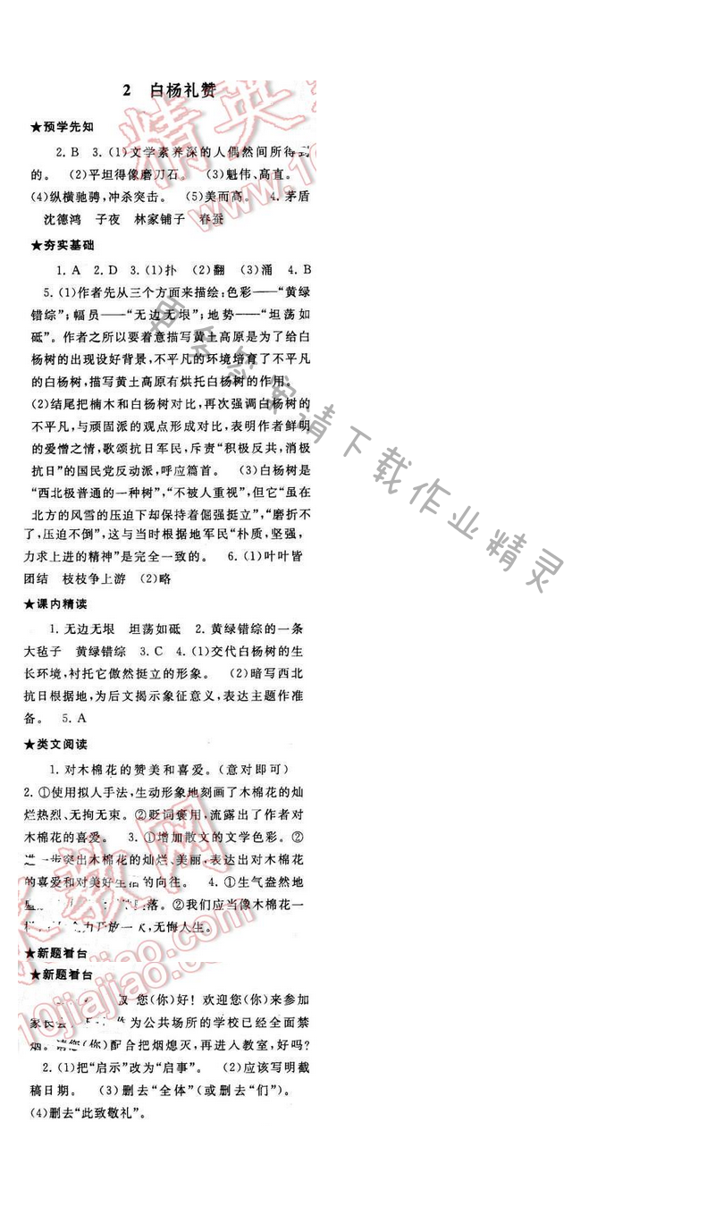 2017年启东黄冈作业本八年级语文下册江苏版第一单元2