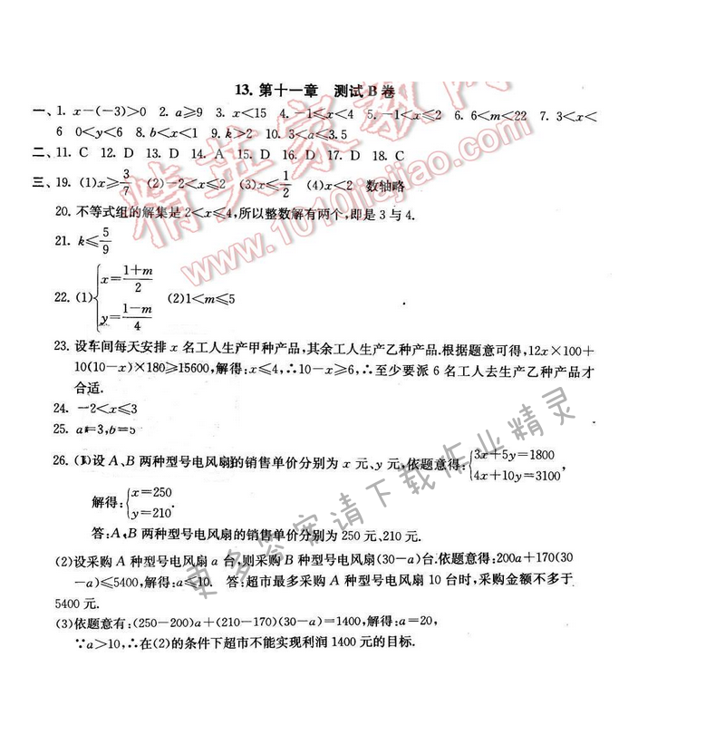 启东黄冈大试卷七年级数学下册苏科版 第十一章 测试B卷