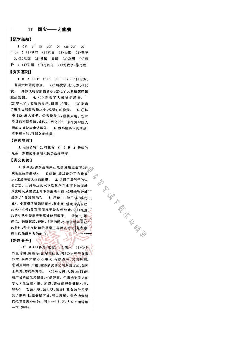 启东黄冈作业本七年级语文下册江苏版 第四单元 17