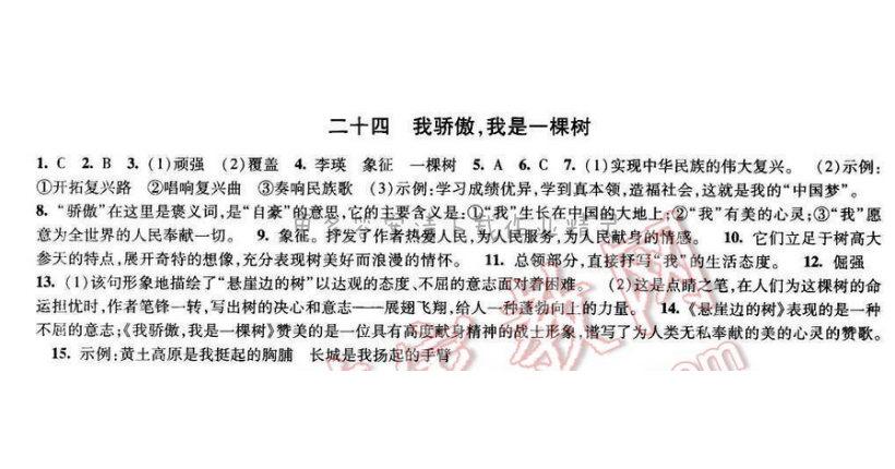 2017经纶学典新课时作业八年级语文下册江苏版 第五单元 二十四 我骄傲,我是一棵树
